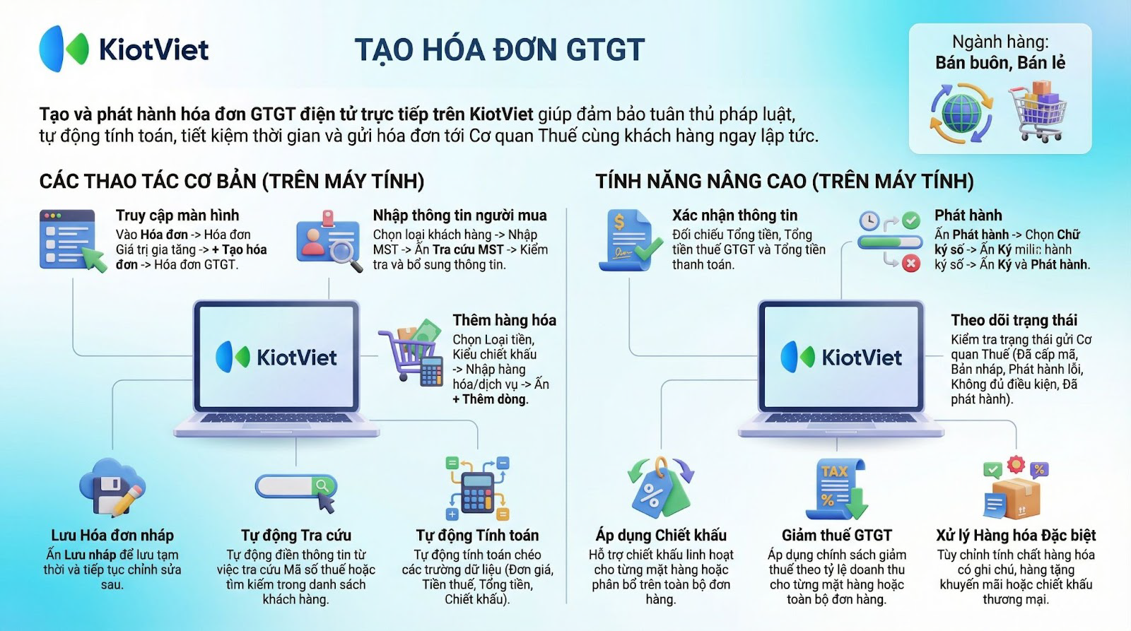Lợi ích nổi bật của tính năng Lập hóa đơn giá trị gia tăng trên KiotViet: