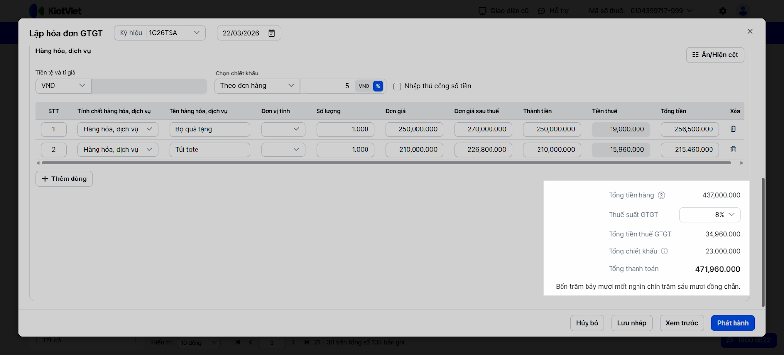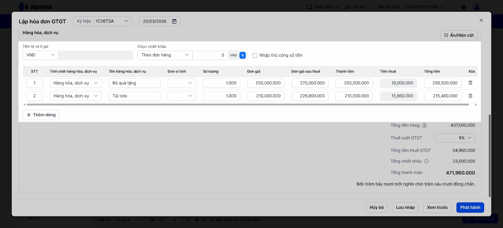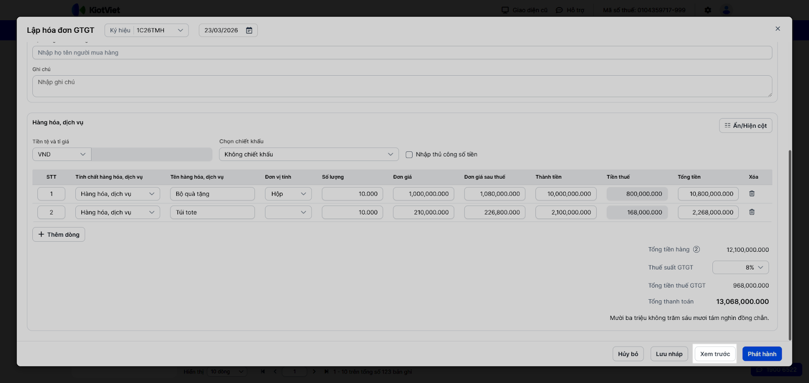 5. Xem trước hóa đơn và phát hành