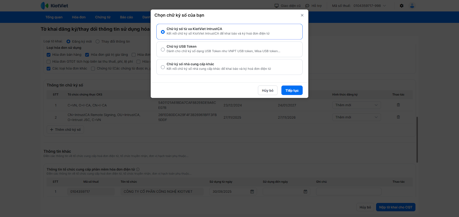 - Chữ ký số từ xa KiotViet IntrustCA: