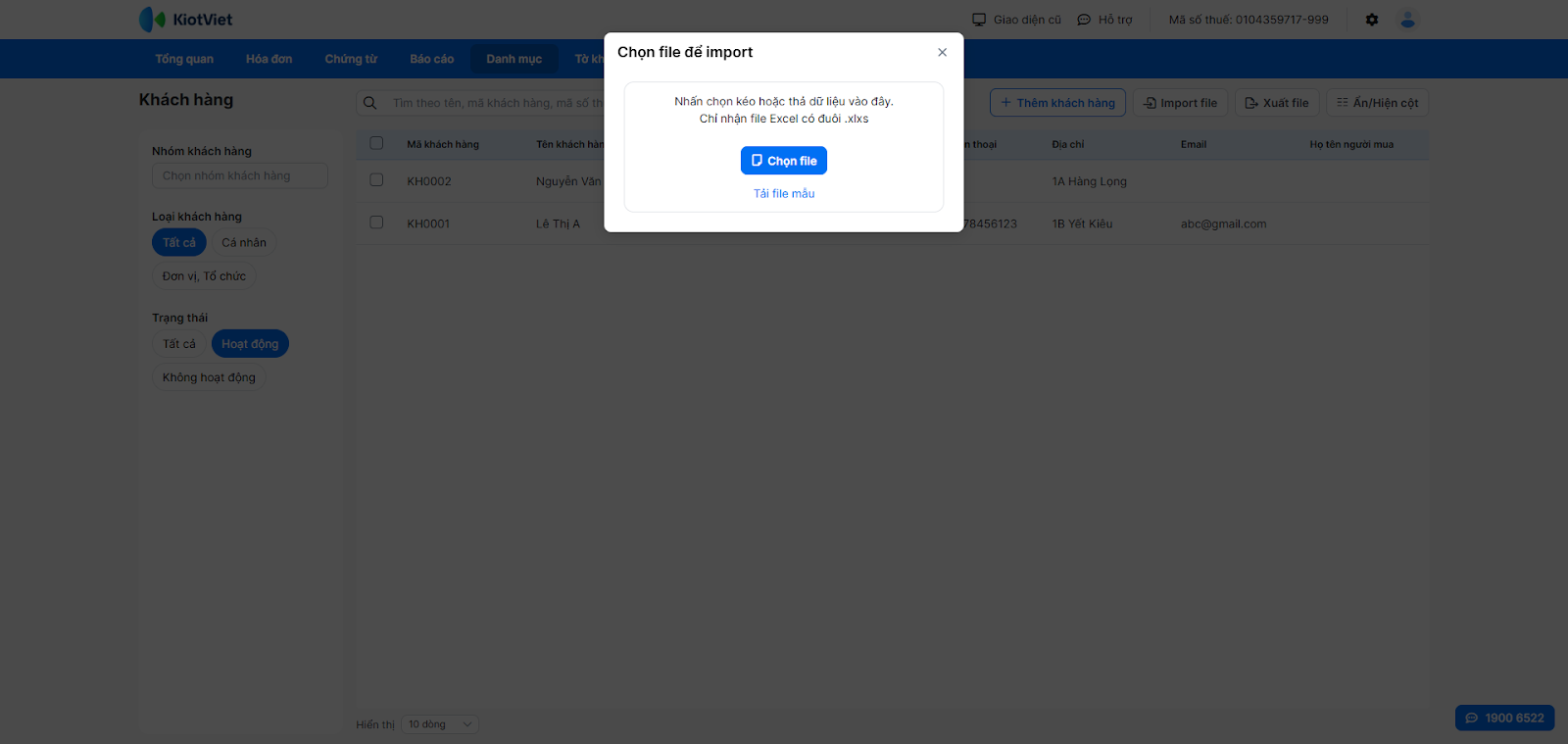 - Tình huống: Cửa hàng mới chuyển đổi sang dùng KiotViet e-invoice và bạn cần nhập danh sách 500 khách hàng từ phần mềm cũ sang.