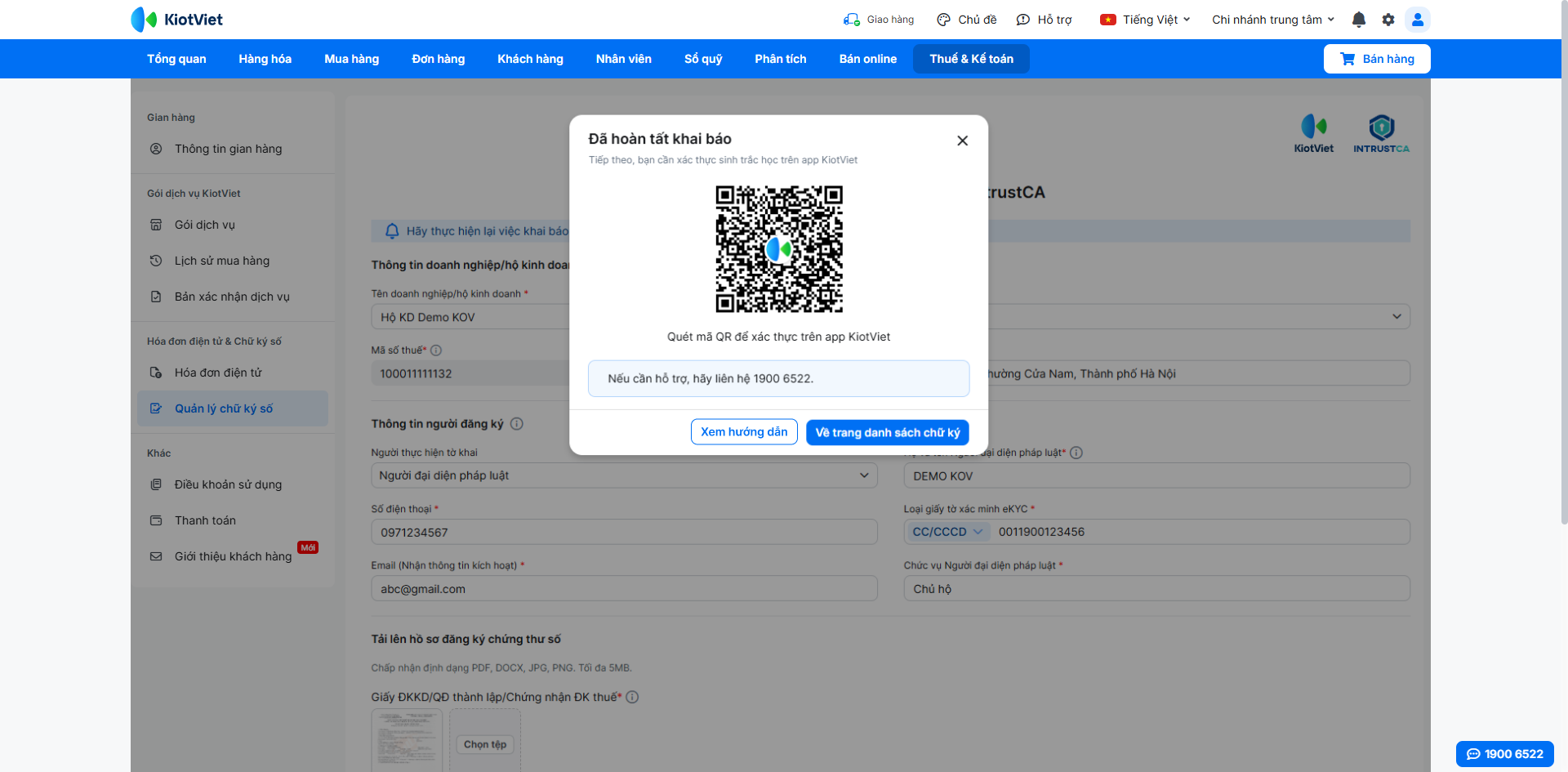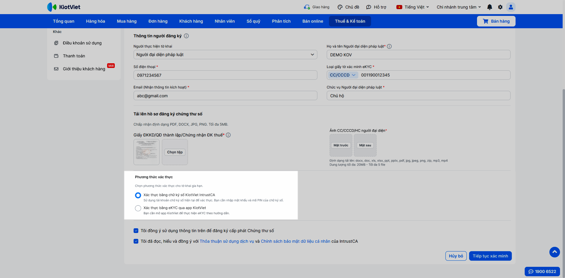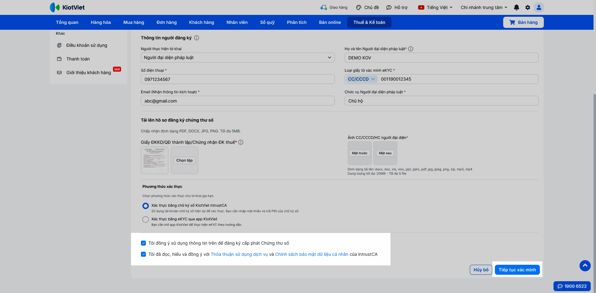 - Xác thực bằng chữ ký số KiotViet IntrustCA
