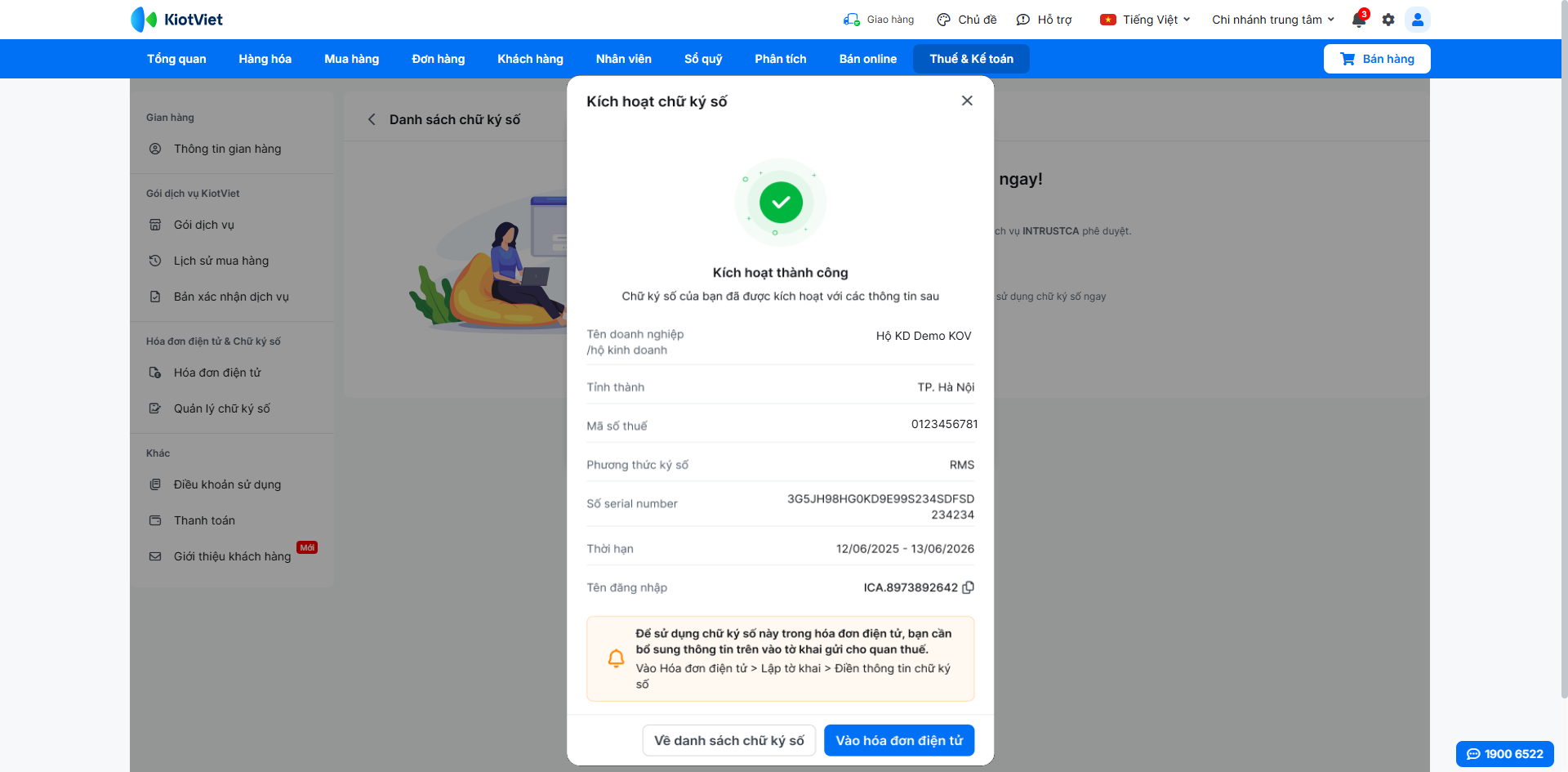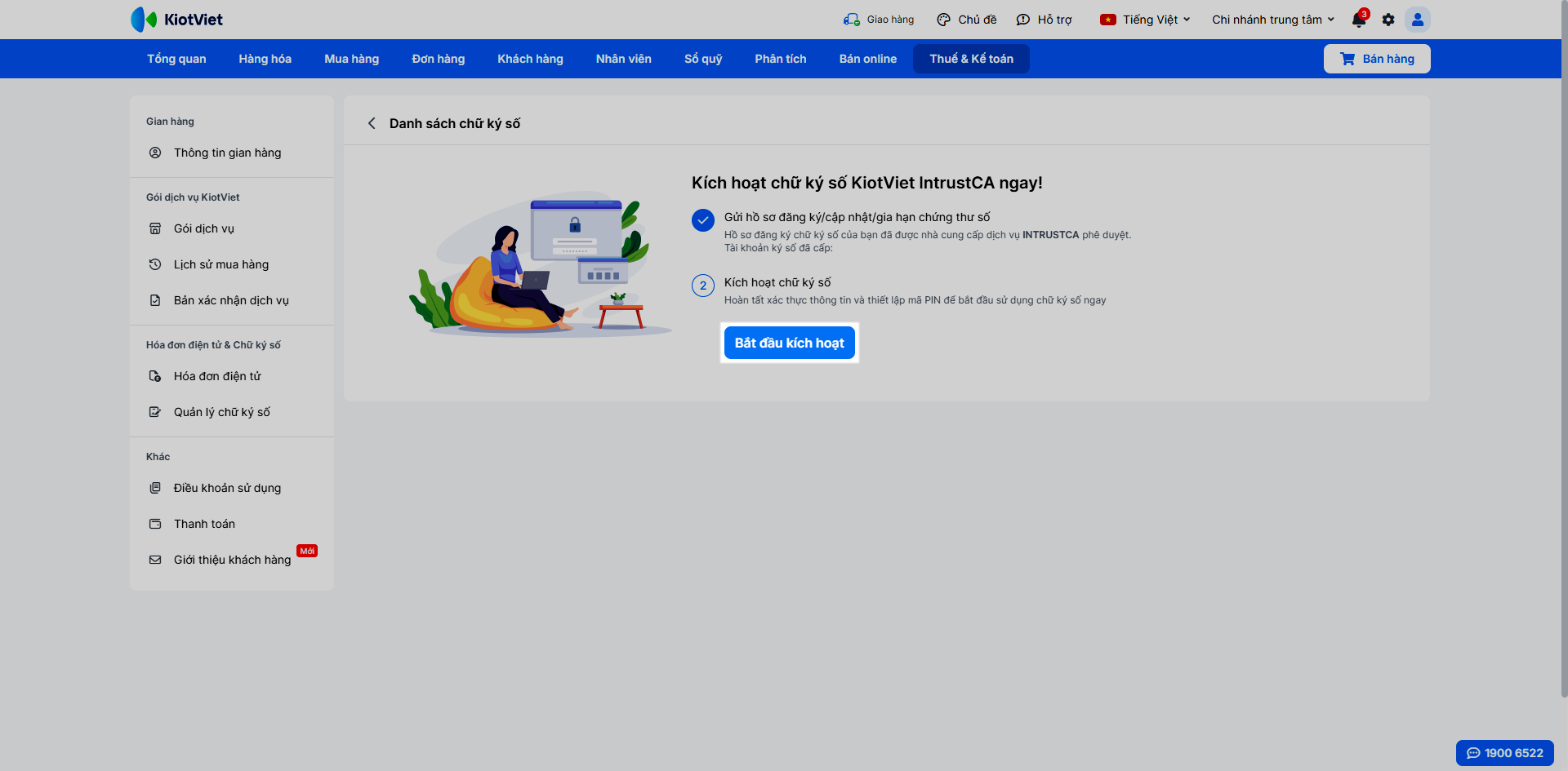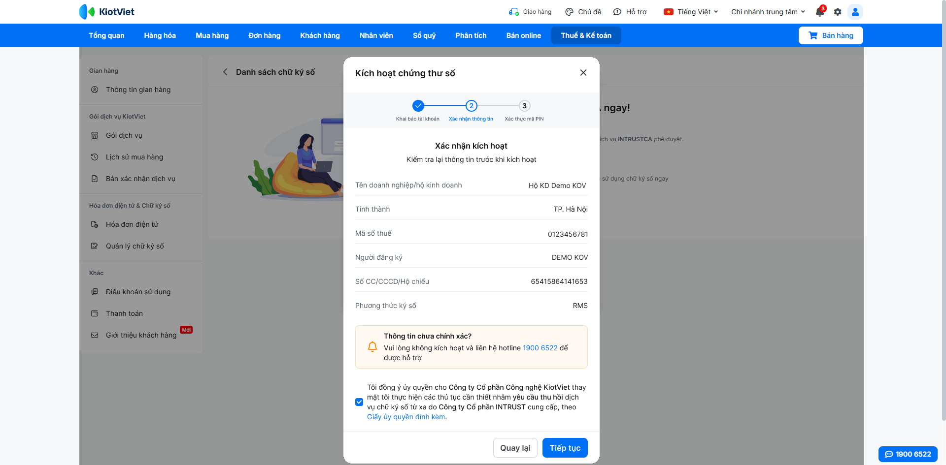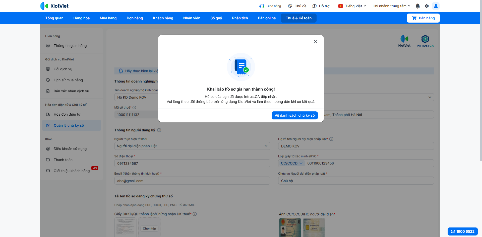- Xác thực bằng chữ ký số KiotViet IntrustCA