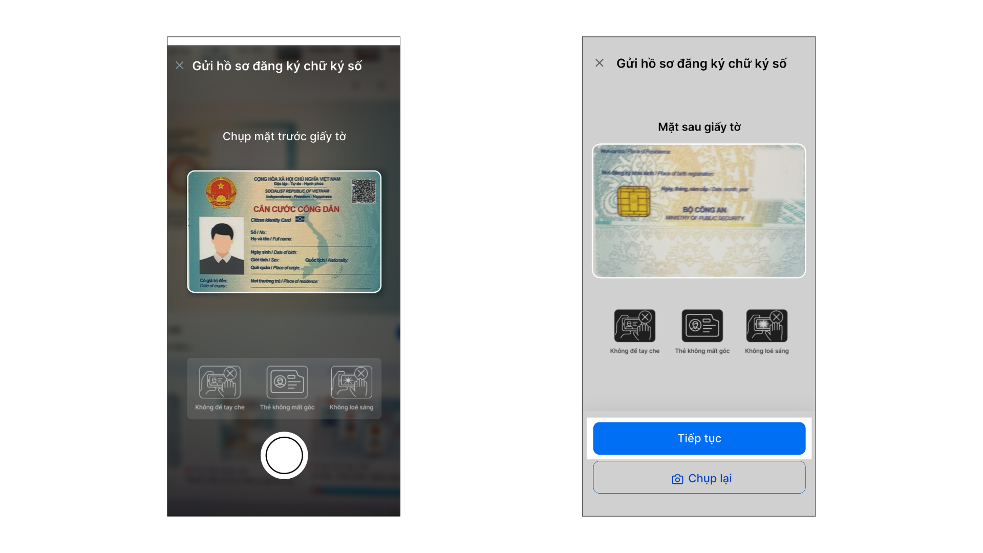- Chụp ảnh giấy tờ (CCCD/Hộ chiếu) theo hướng dẫn.