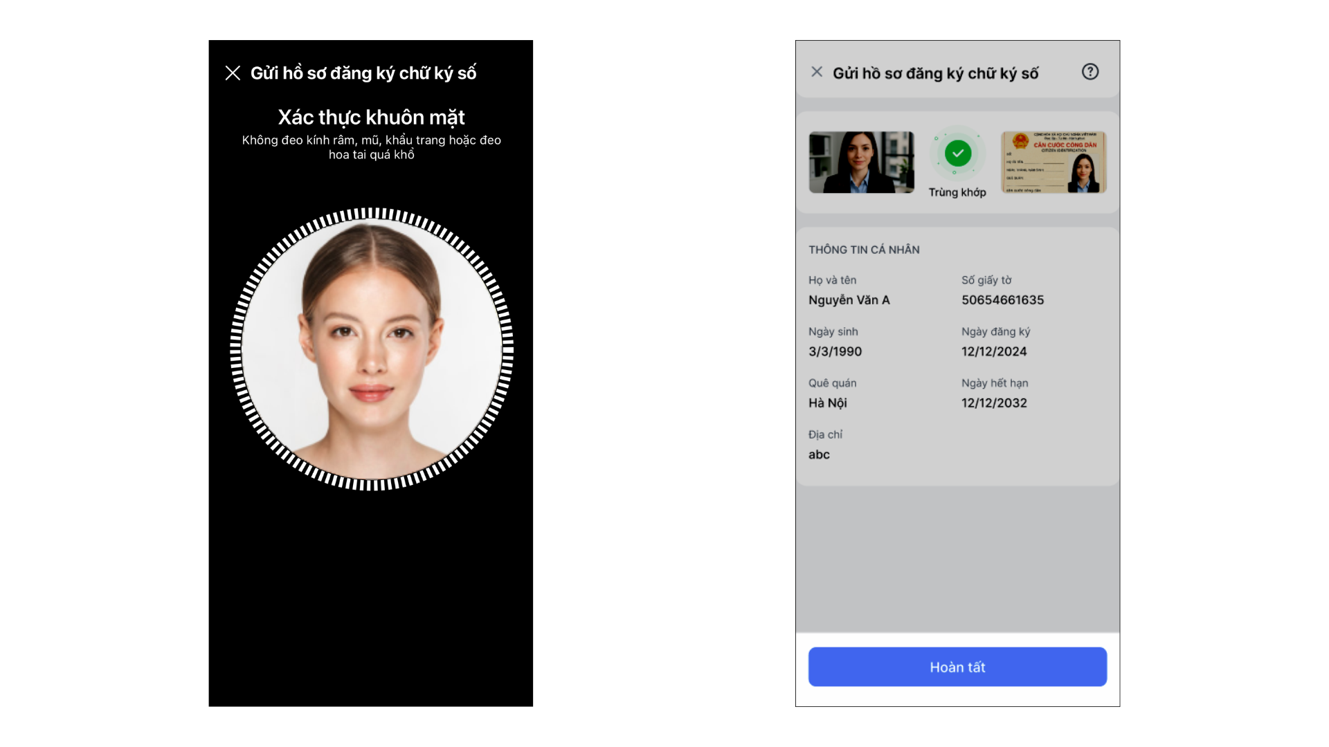 - Thực hiện xác thực khuôn mặt theo hướng dẫn trên màn hình.