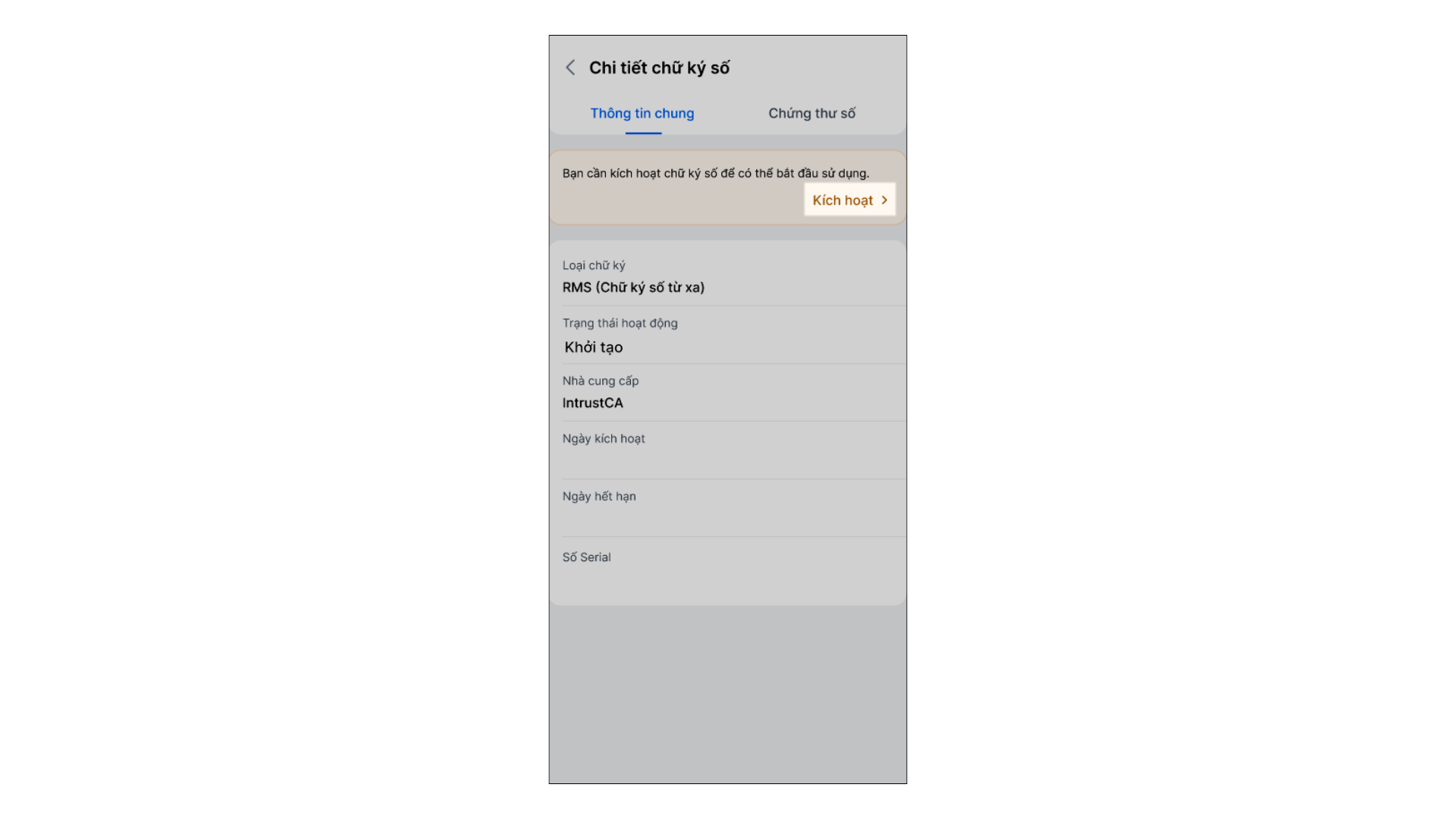 Tình huống: Sau khi hồ sơ gia hạn được phê duyệt, bạn đang dùng điện thoại và muốn tiến hành kích hoạt ngay để chứng thư số mới có hiệu lực hoạt động.