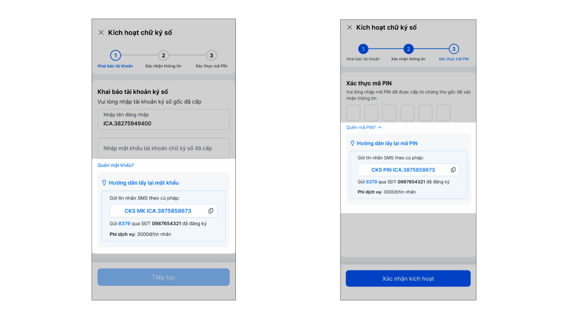 1. Quên mật khẩu hoặc mã PIN khi xác nhận tài khoản ký số