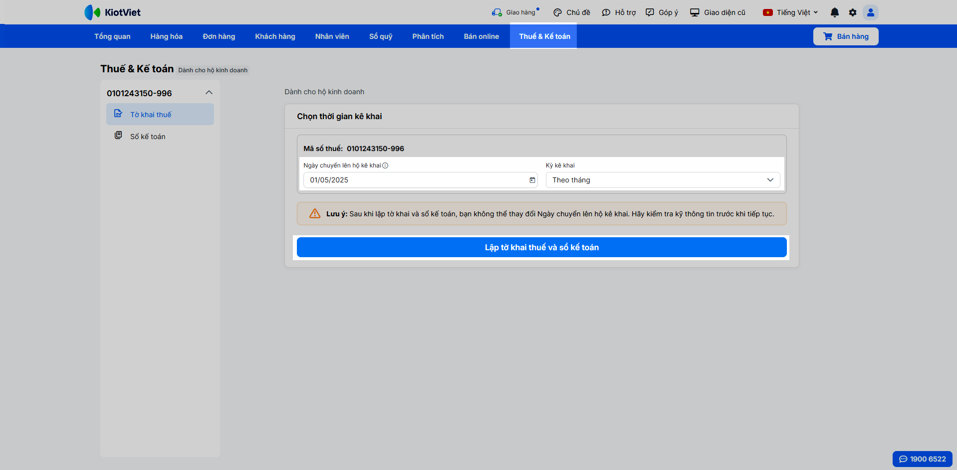 - Nhấn nút Lập tờ khai thuế và Sổ kế toán.