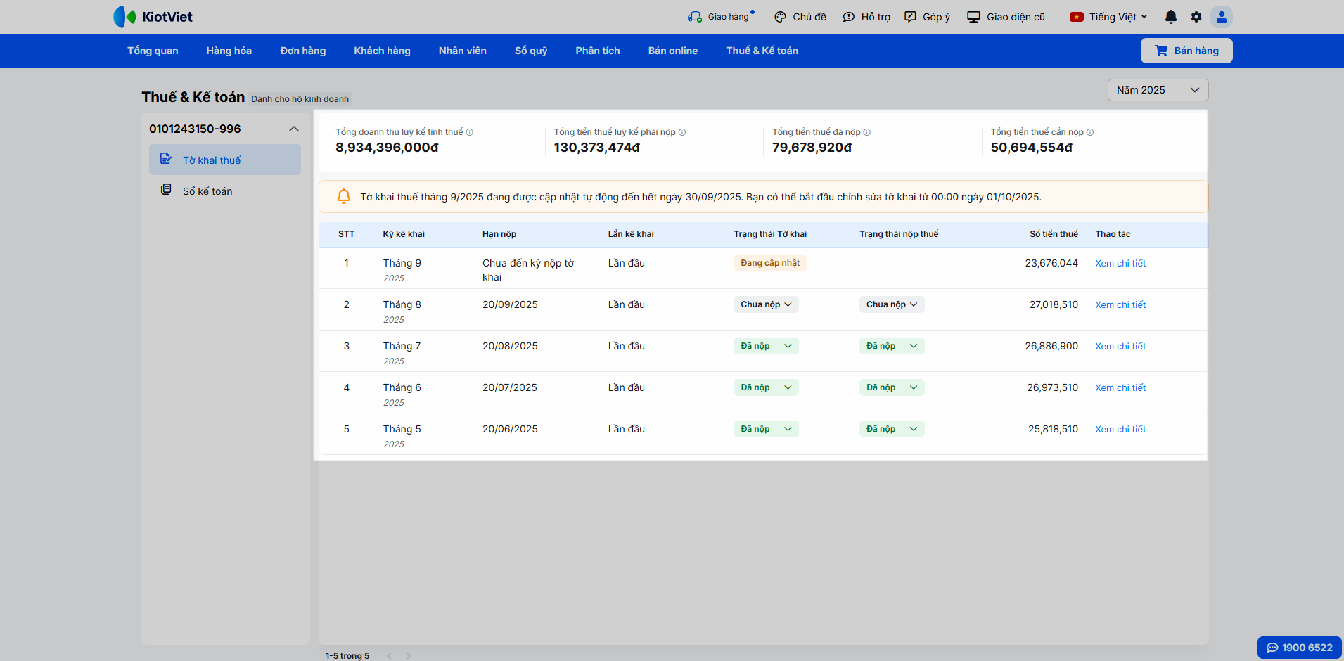 - Tiết kiệm thời gian: Hệ thống tự động tổng hợp doanh thu từ dữ liệu bán hàng, tính toán số thuế phải nộp và tạo các mẫu tờ khai cần thiết, giảm thiểu tối đa các thao tác nhập liệu thủ công.