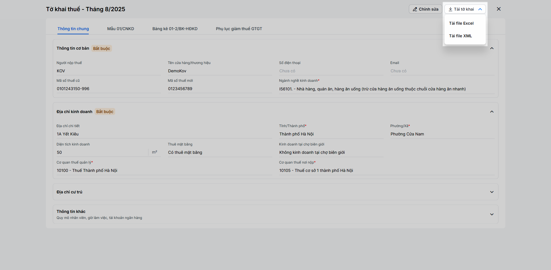 - Tải file Excel: Dùng để in ra và nộp trực tiếp tại cơ quan thuế.