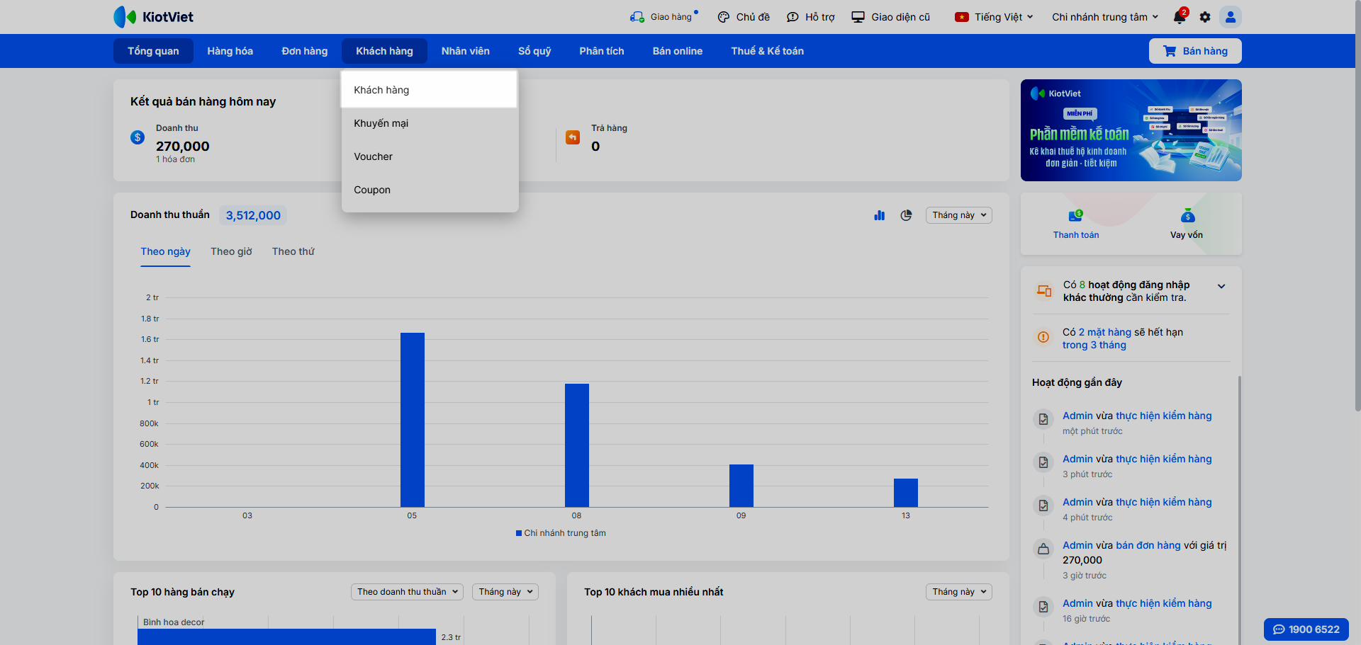 - Ở màn hình Tổng quan thông báo sinh nhật khách hàng sẽ chỉ tính trên những khách hàng thuộc chi nhánh hiện tại mà người dùng đang truy cập.