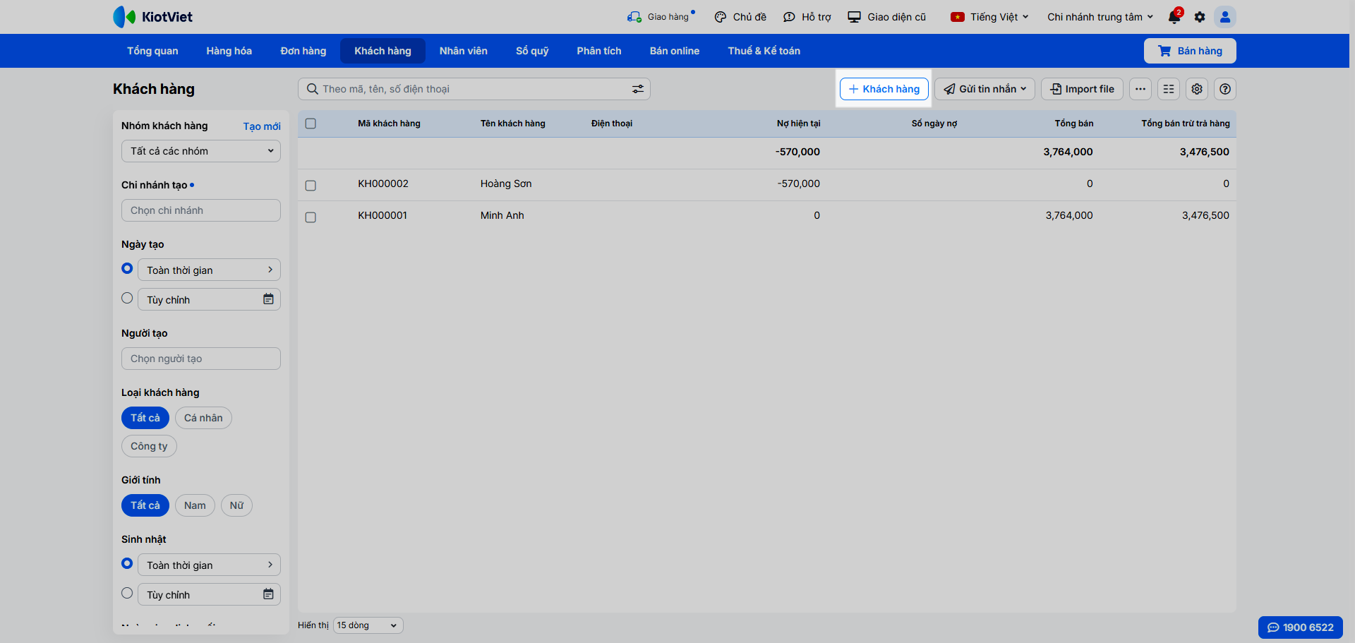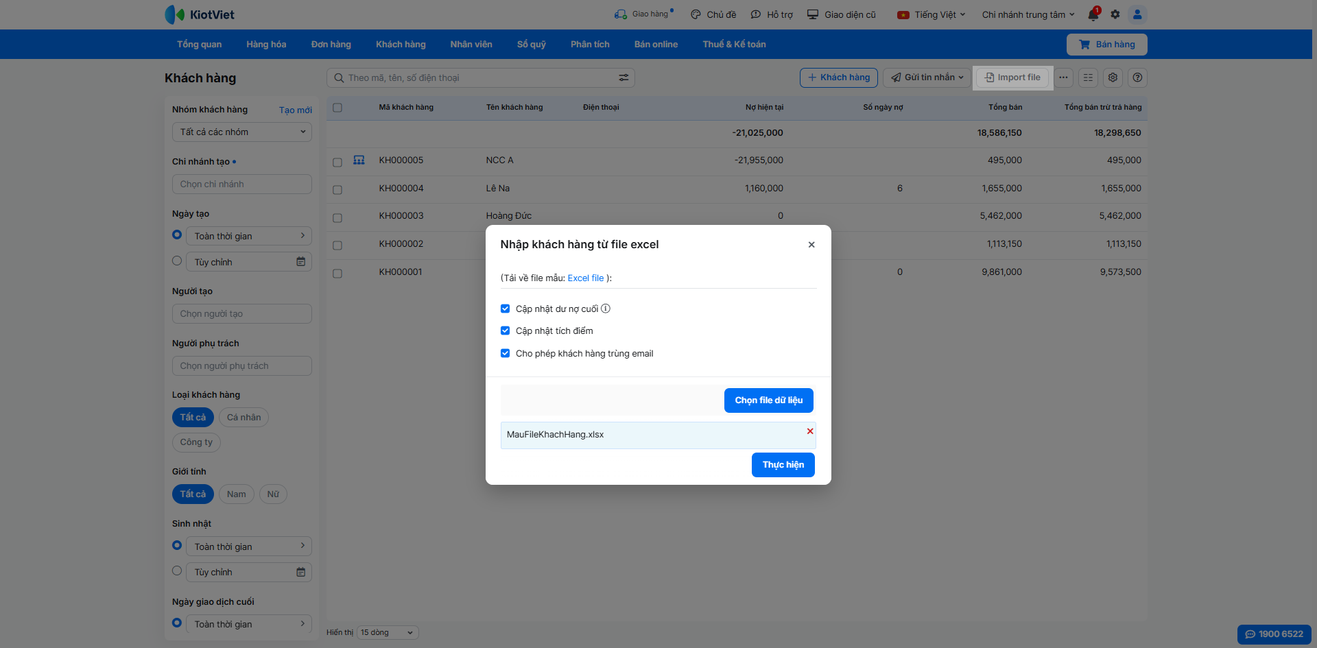 - Tình huống: Khi bạn mới bắt đầu sử dụng KiotViet và muốn tải lên danh sách khách hàng có sẵn, hoặc khi bạn cần xuất toàn bộ dữ liệu khách hàng ra file để phân tích riêng.