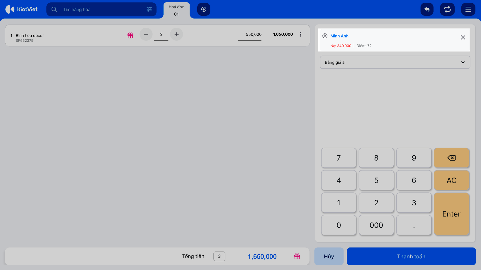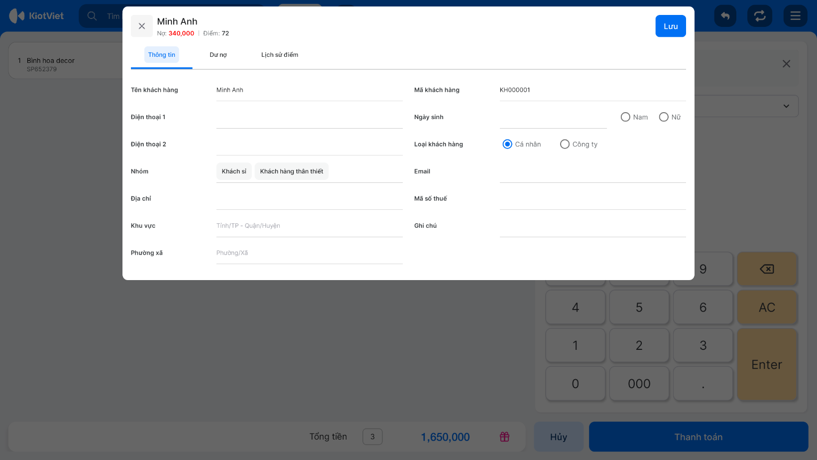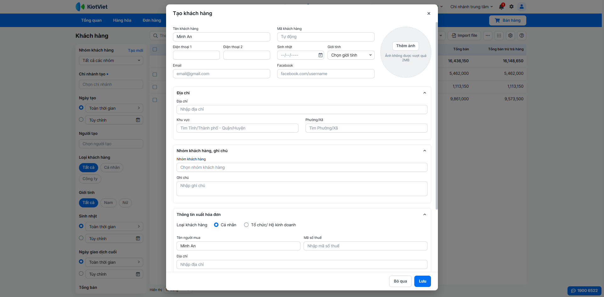 - Tình huống: Khi bán hàng, bạn cần thêm nhanh khách hàng mới hoặc chọn khách hàng cũ vào hóa đơn.