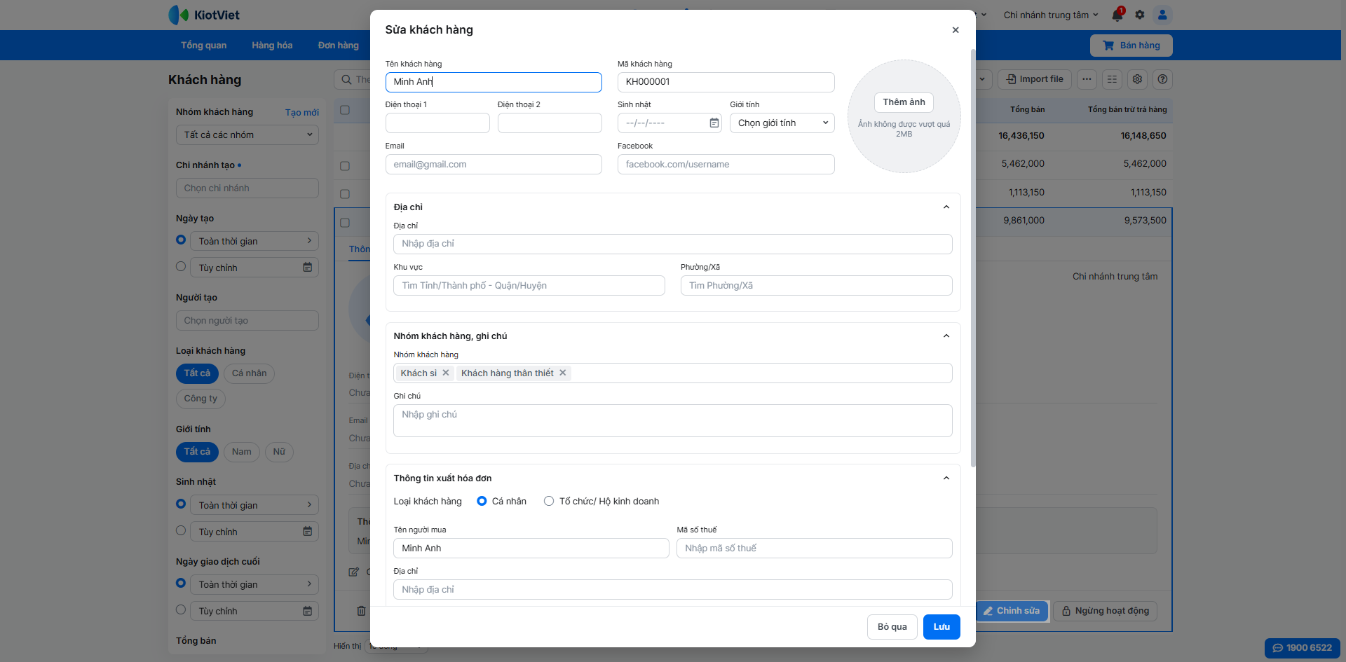 - Cách 1: Chỉnh sửa từ mục Khách hàng