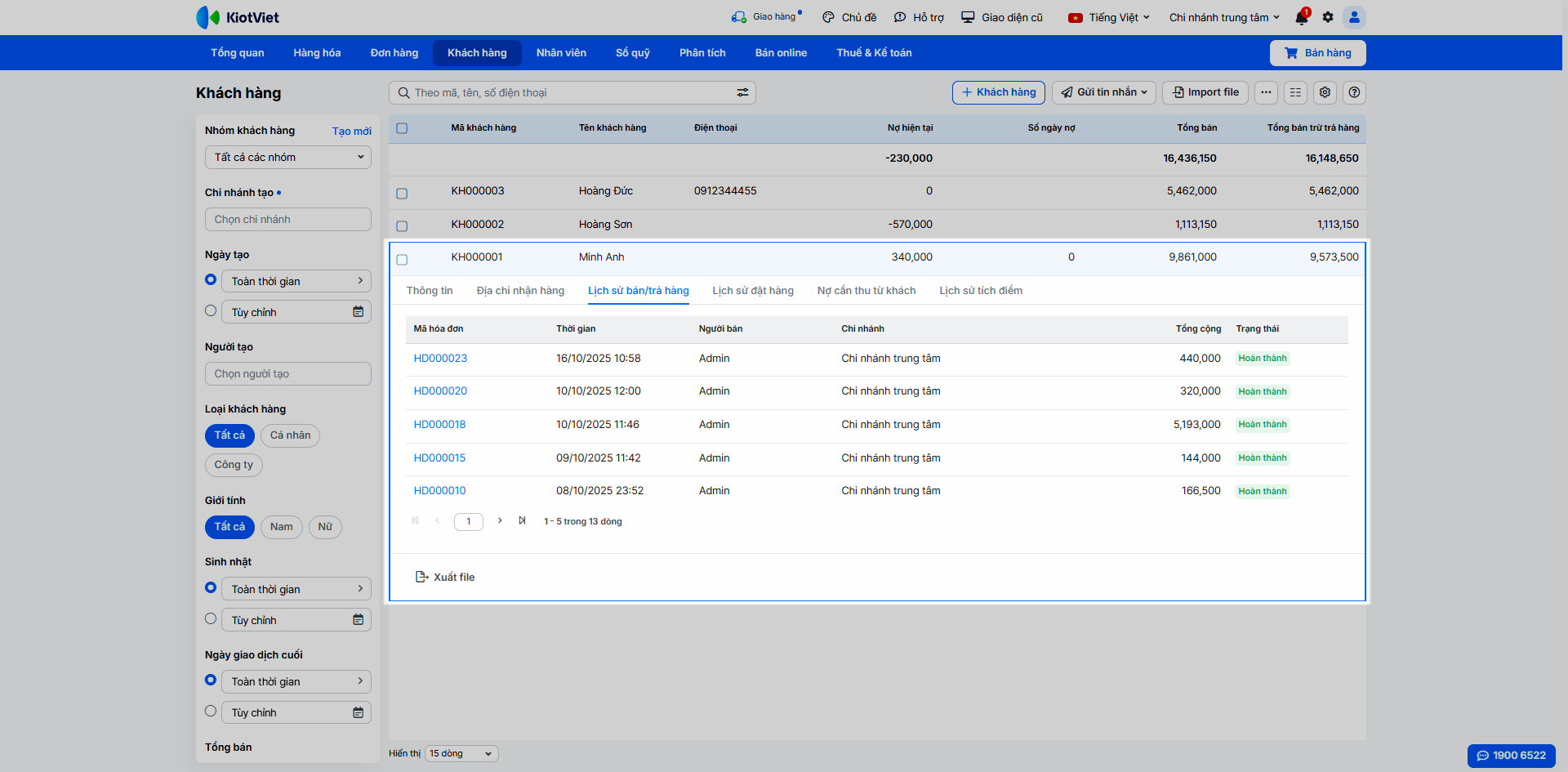 - Tình huống: Khi bạn cần kiểm tra lại các sản phẩm một khách hàng đã mua, các lần trả hàng, hoặc xem lại chi tiết một hóa đơn cũ của họ.