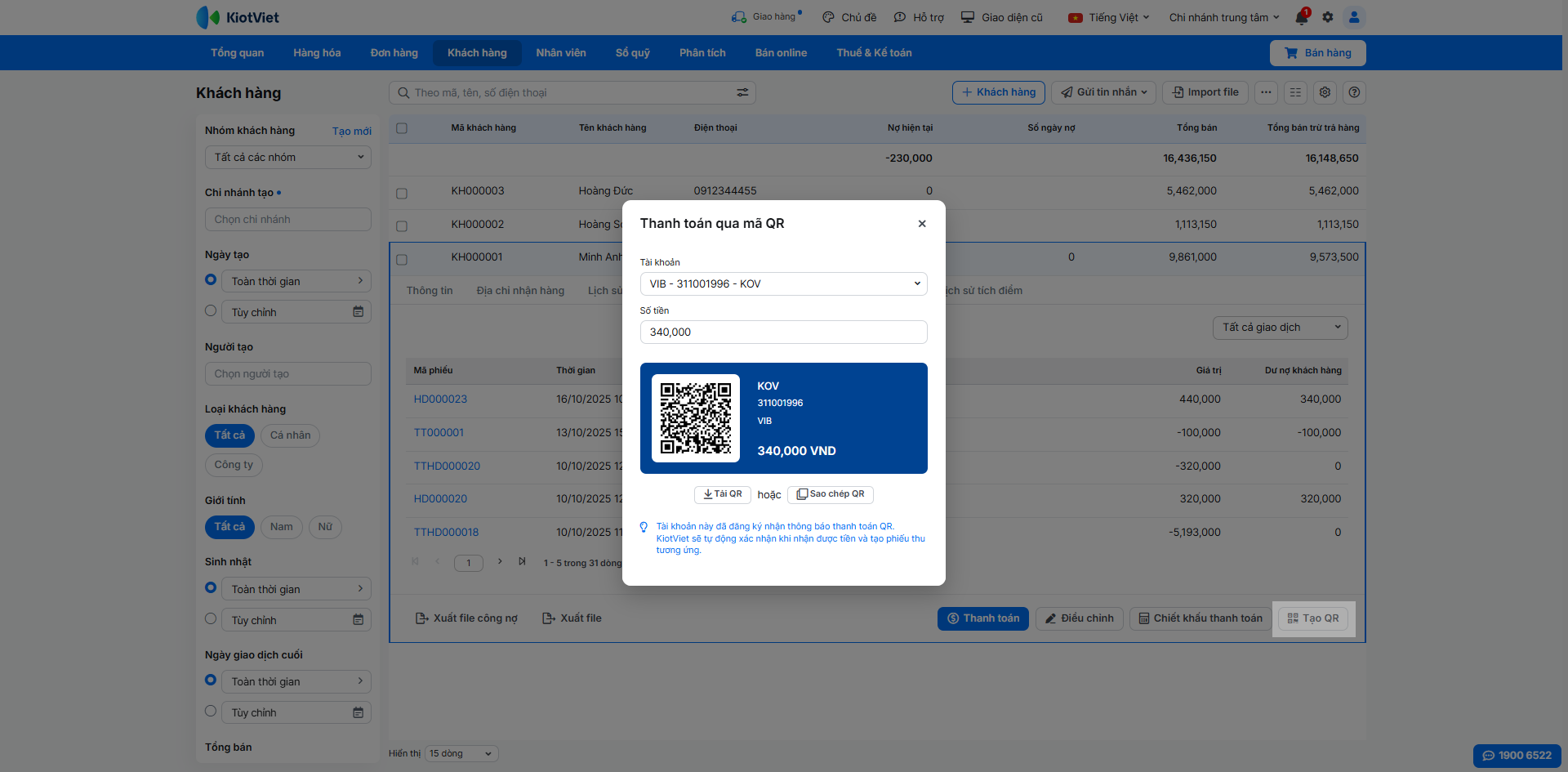 - Trong tab Nợ cần thu từ khách, nhấn Tạo QR.