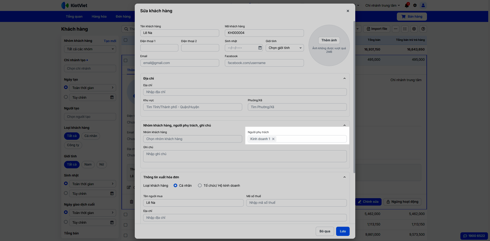 - Tình huống: Khi khách hàng thay đổi thông tin cá nhân như số điện thoại, địa chỉ giao hàng, hoặc bạn cần bổ sung thêm ghi chú về khách hàng này.