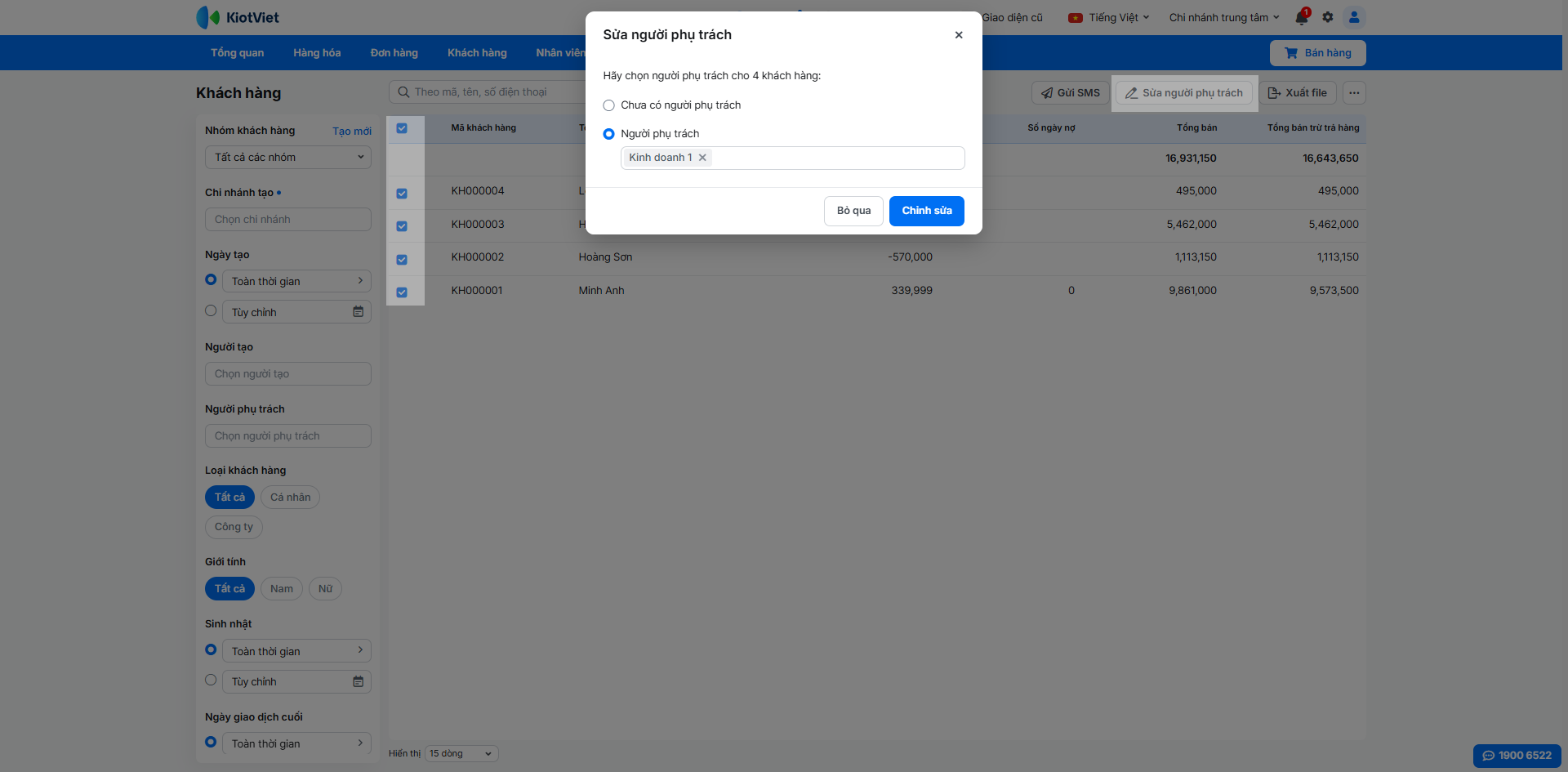 - Tình huống: Bạn cần gán một nhân viên cụ thể phụ trách một hoặc nhiều khách hàng.