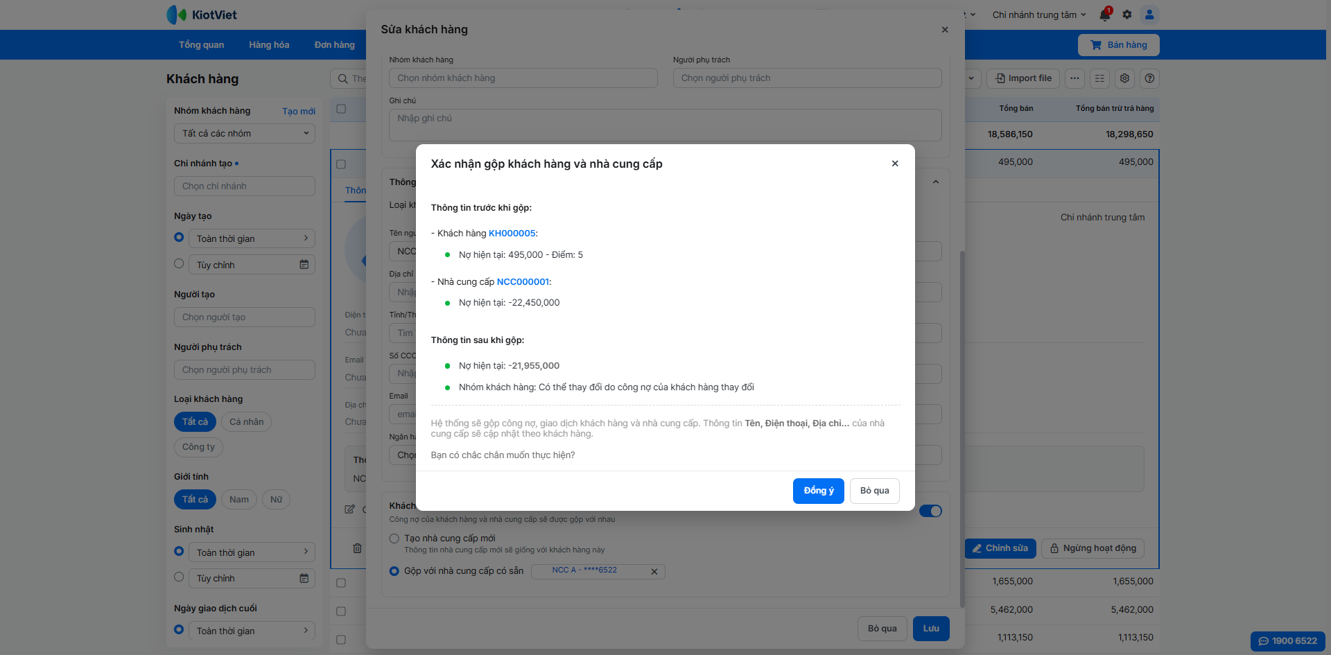 - Tình huống: Khi một đối tác vừa mua hàng của bạn (khách hàng), vừa bán hàng cho bạn (nhà cung cấp), và bạn muốn gộp công nợ của họ lại để theo dõi tập trung.