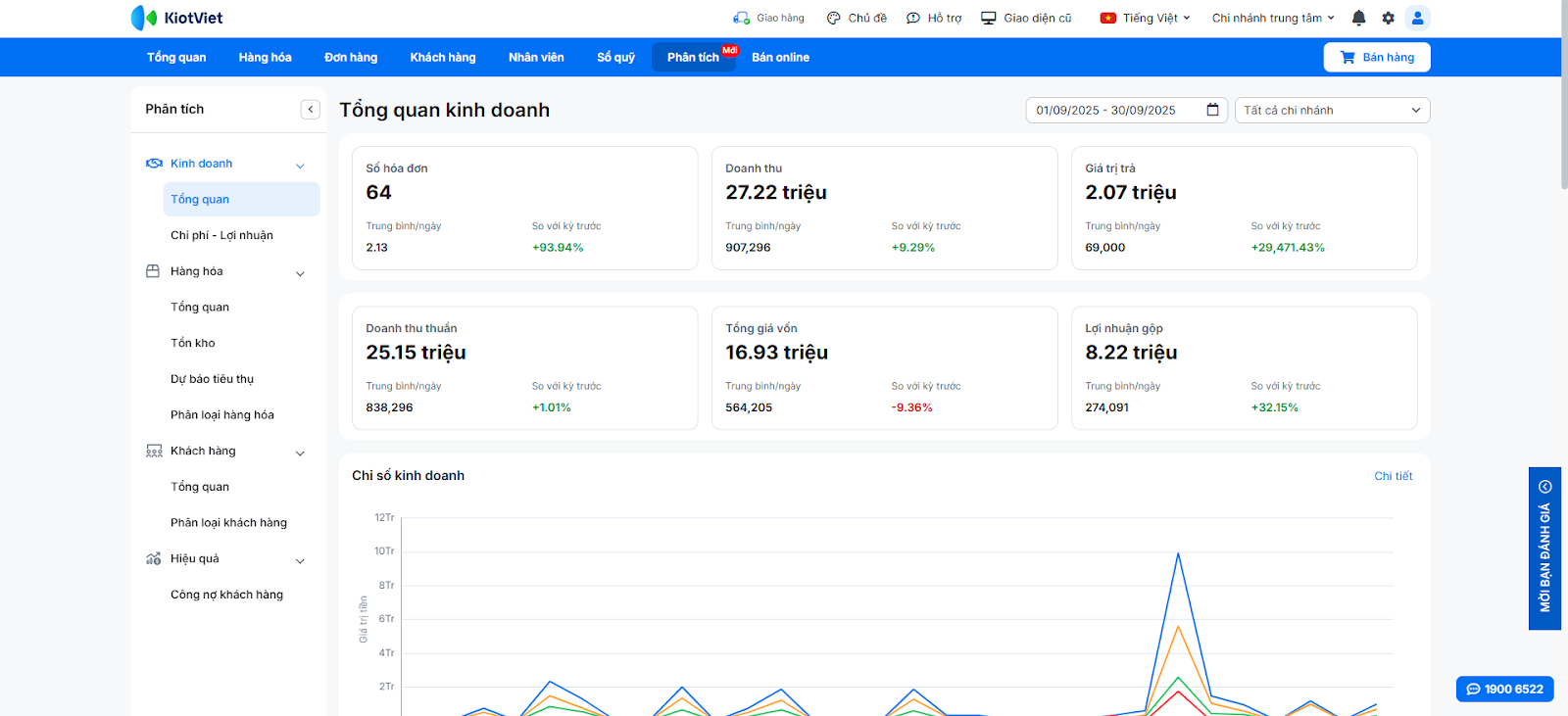 - Nắm bắt toàn cảnh kinh doanh: Cung cấp cái nhìn tổng quan toàn diện về hoạt động kinh doanh, các chỉ số quan trọng, hiệu suất bán hàng, và sản phẩm bán chạy.