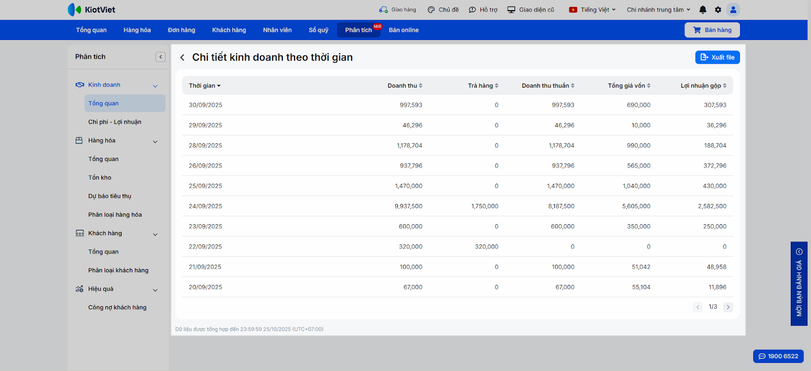 - Doanh thu/ Trả hàng/ Lợi nhuận gộp/ Kênh bán