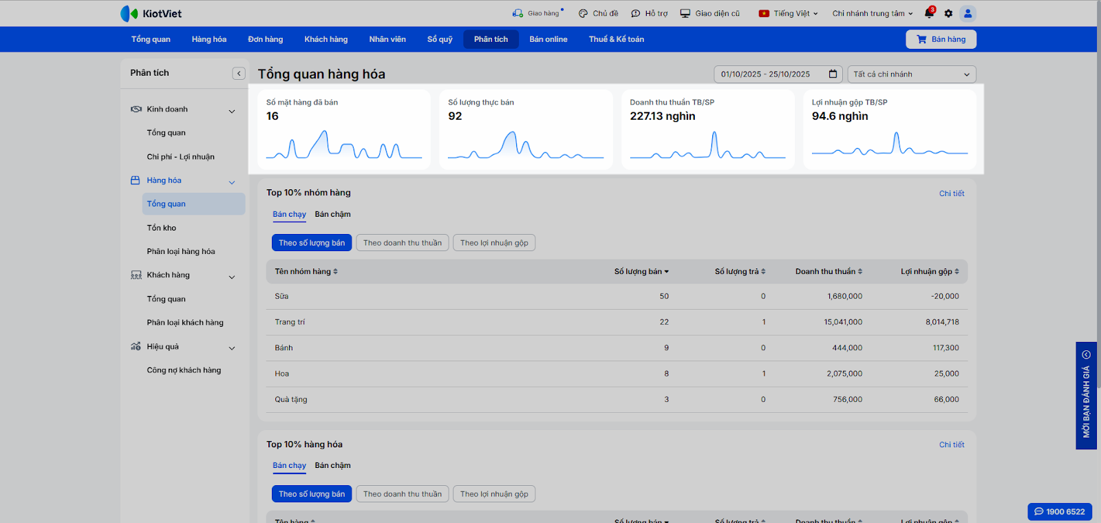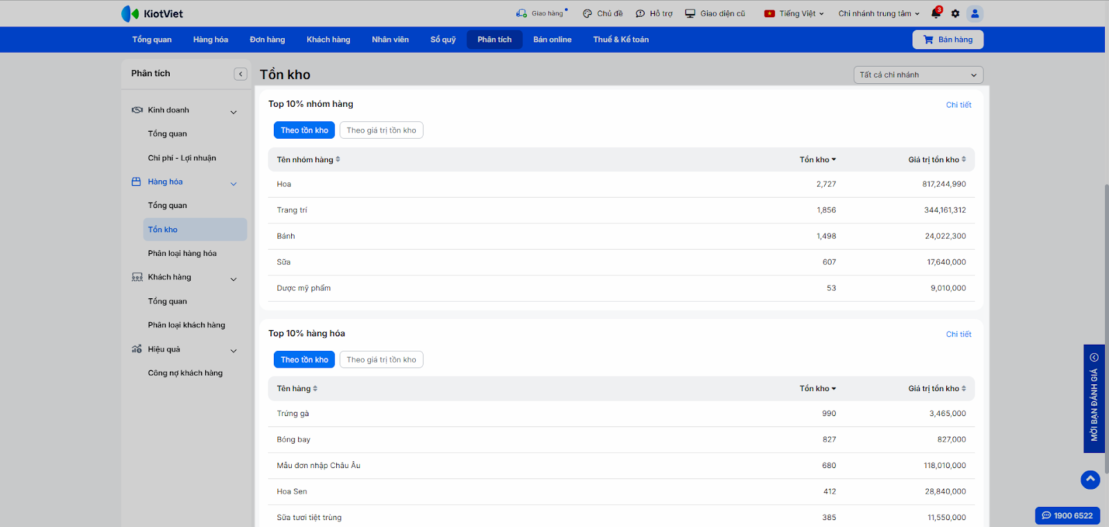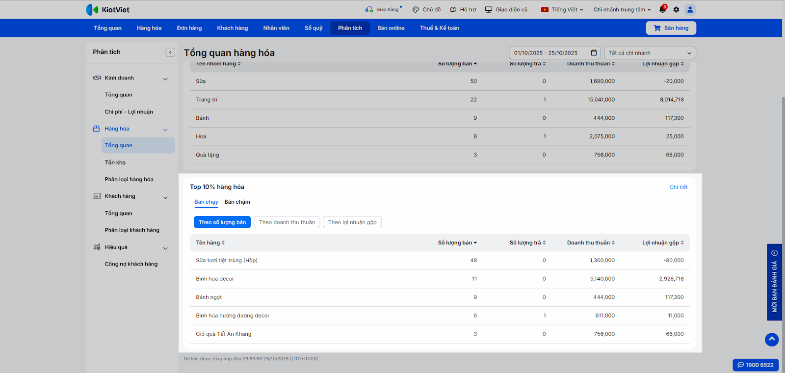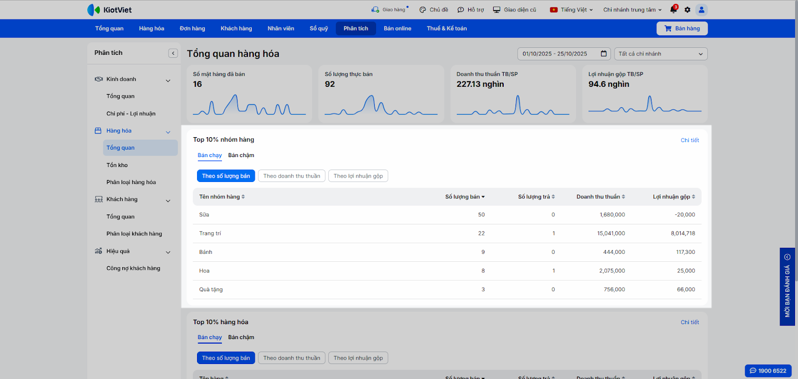 - Top 10% hàng hóa (Bán chạy / Bán chậm):