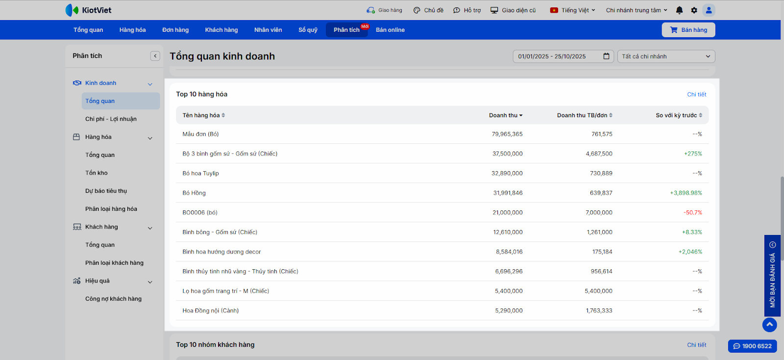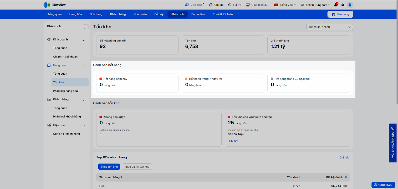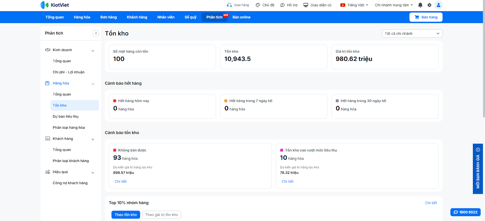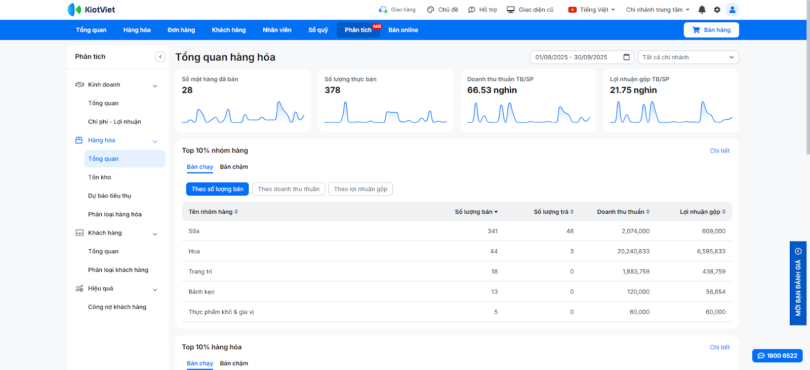 - Top 10% hàng hóa (Bán chạy / Bán chậm):
