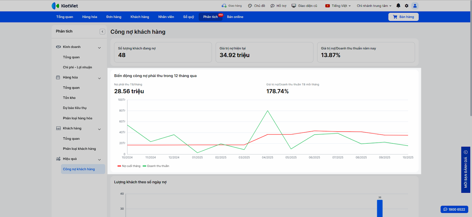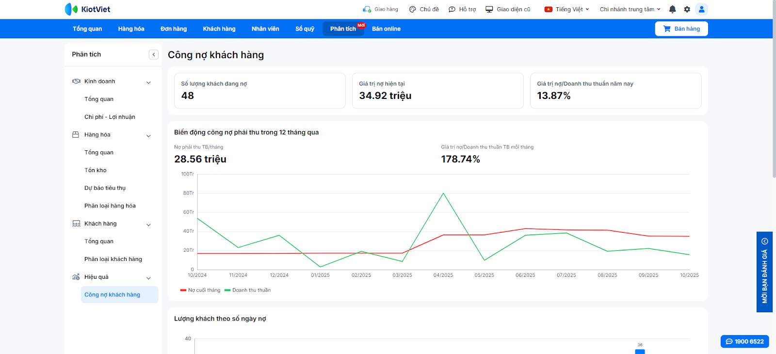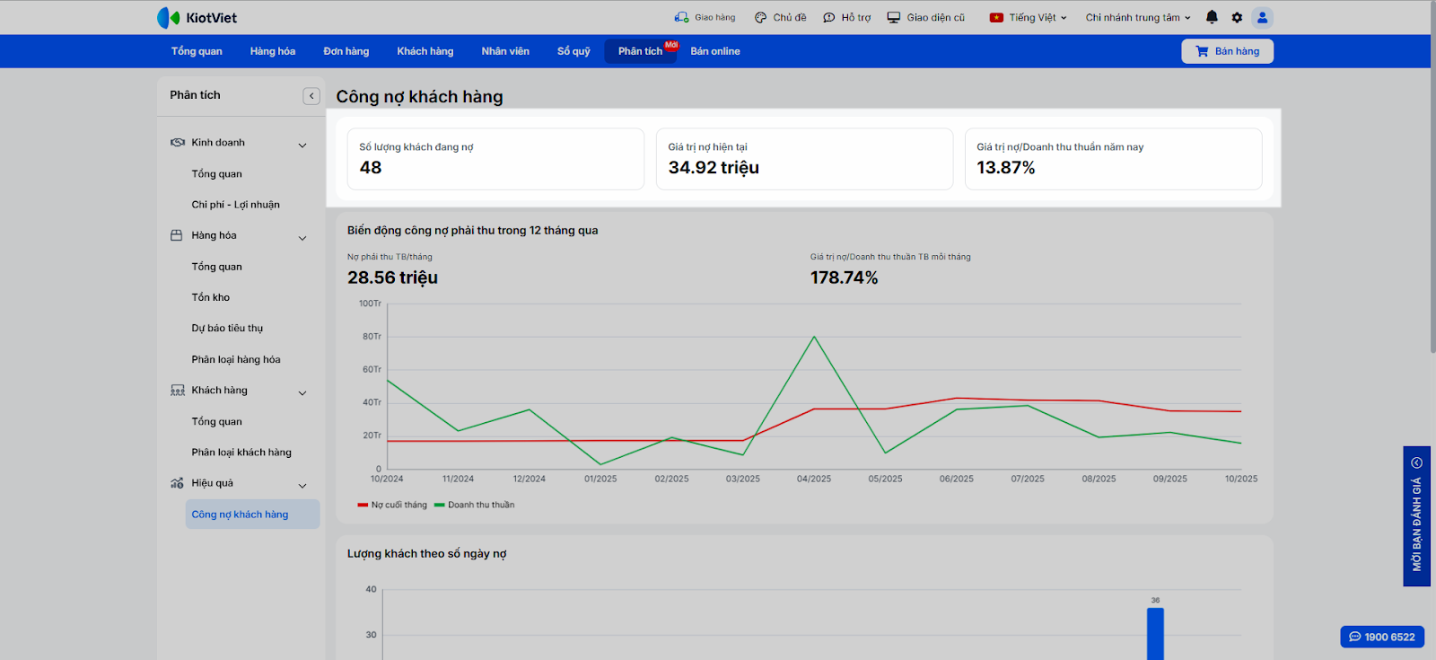- Số lượng khách nợ: Tổng số khách hàng hiện đang có công nợ dương.