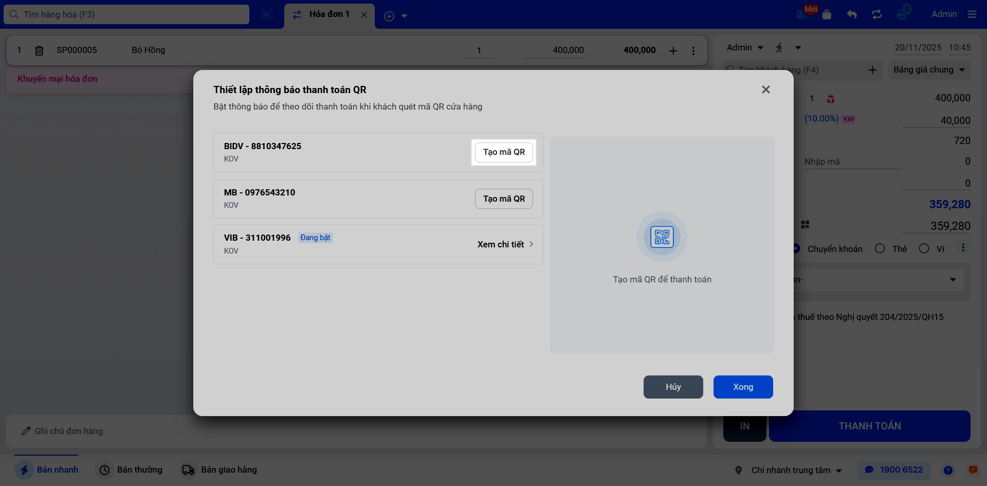 5.1. Thiết lập thông báo thanh toán QR cửa hàng