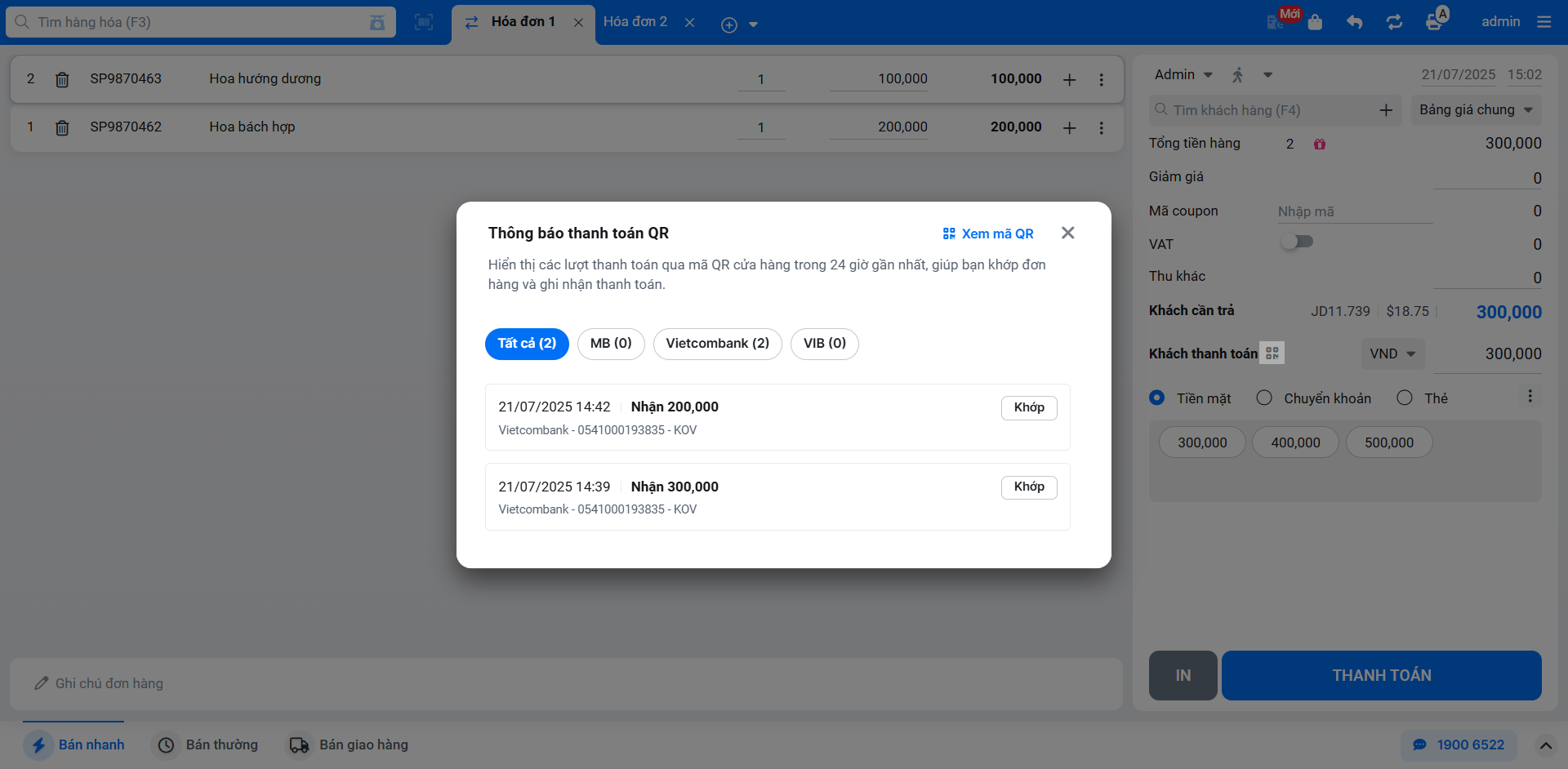 - 5.2. Khớp thanh toán QR với đơn tạm