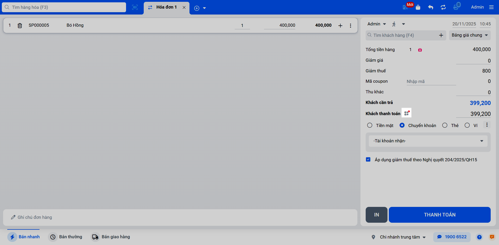 (4) Nhấn Thanh toán (hoặc nhấn phím F9) để hoàn tất giao dịch.