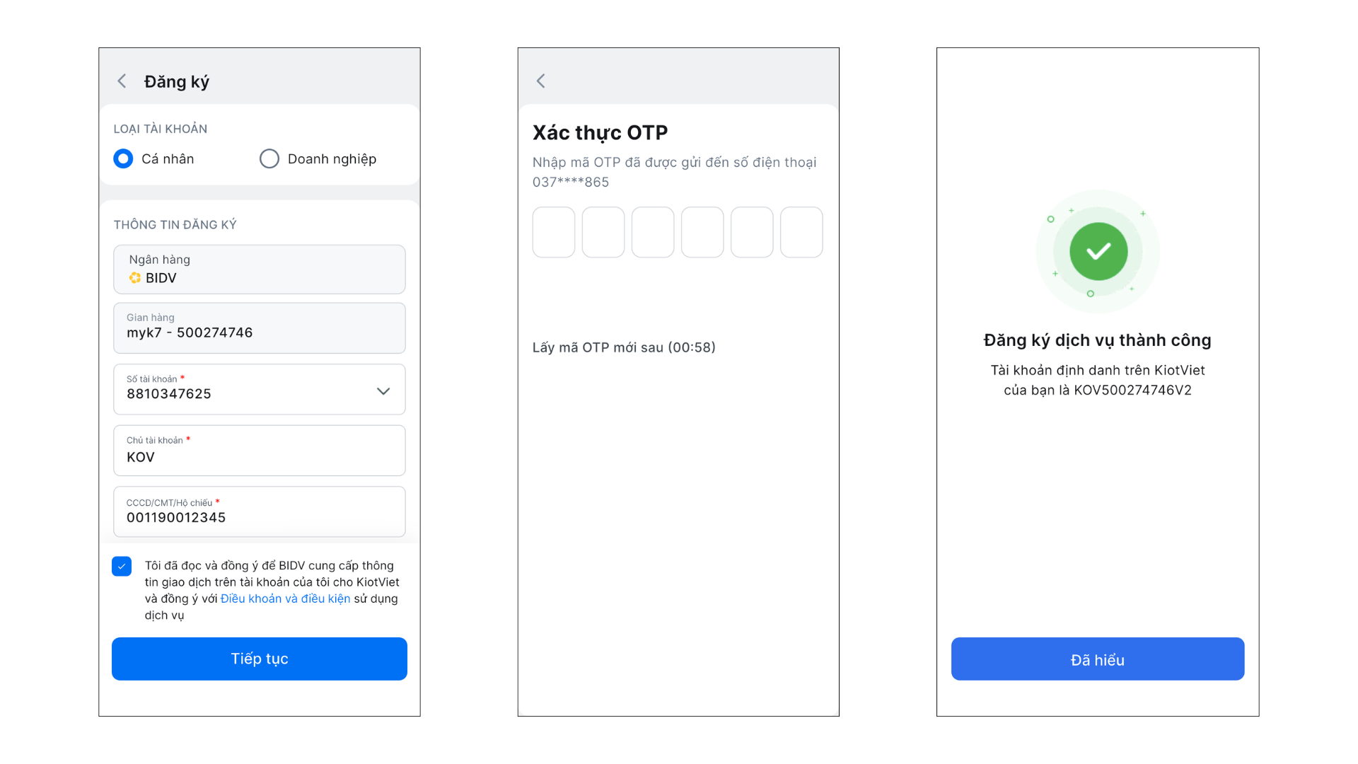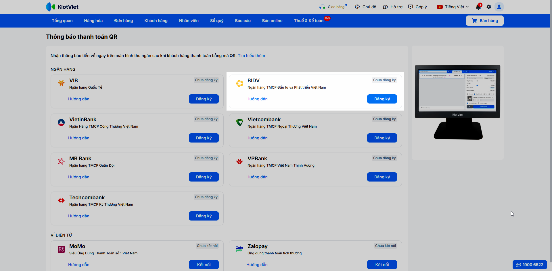- Hiện tại, tính năng chỉ hỗ trợ đăng ký tự động cho tài khoản cá nhân. Với tài khoản doanh nghiệp, bạn vui lòng liên hệ KiotViet để được hỗ trợ.