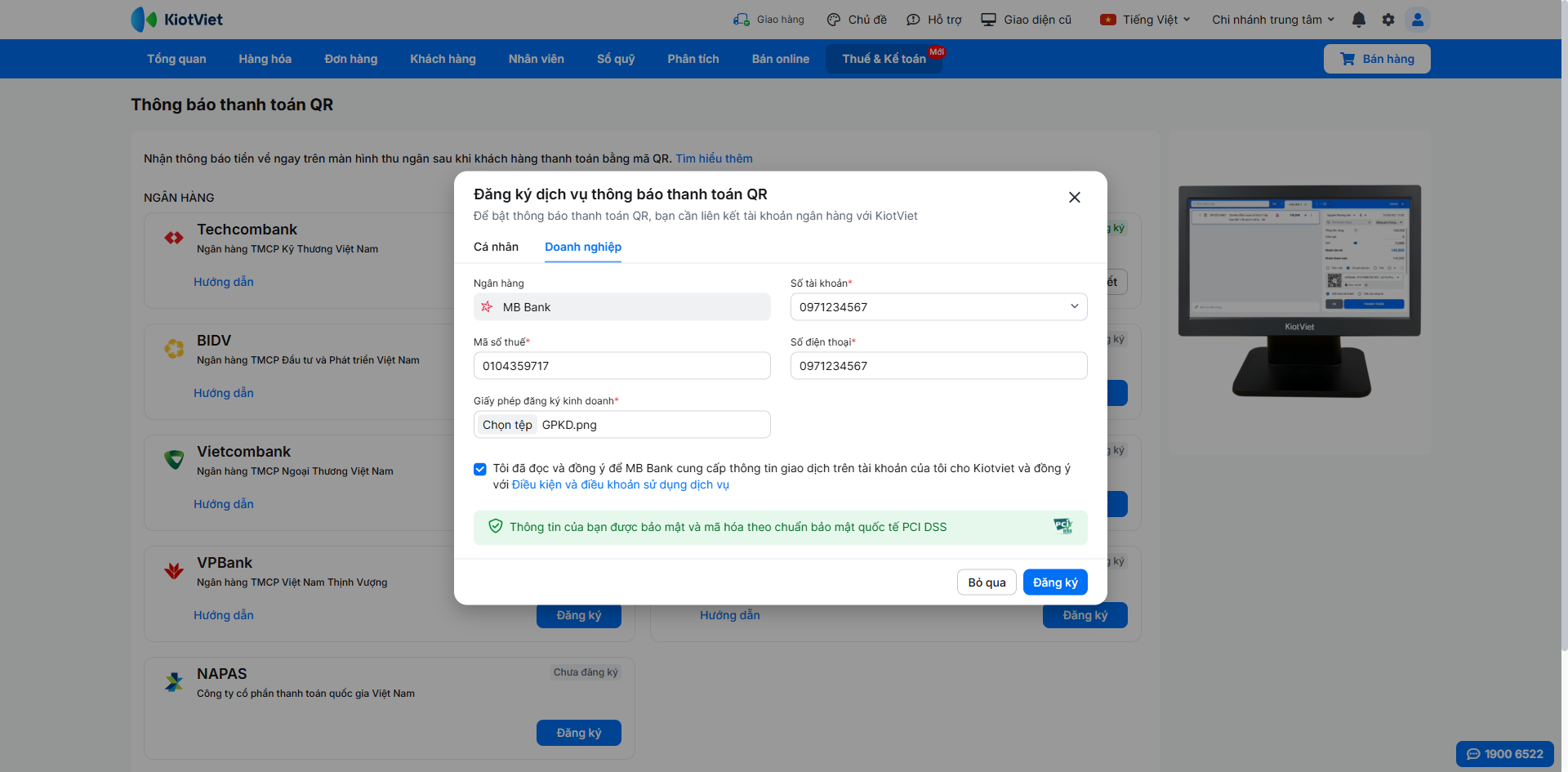 - 1.1. Đăng ký dịch vụ trên KiotViet