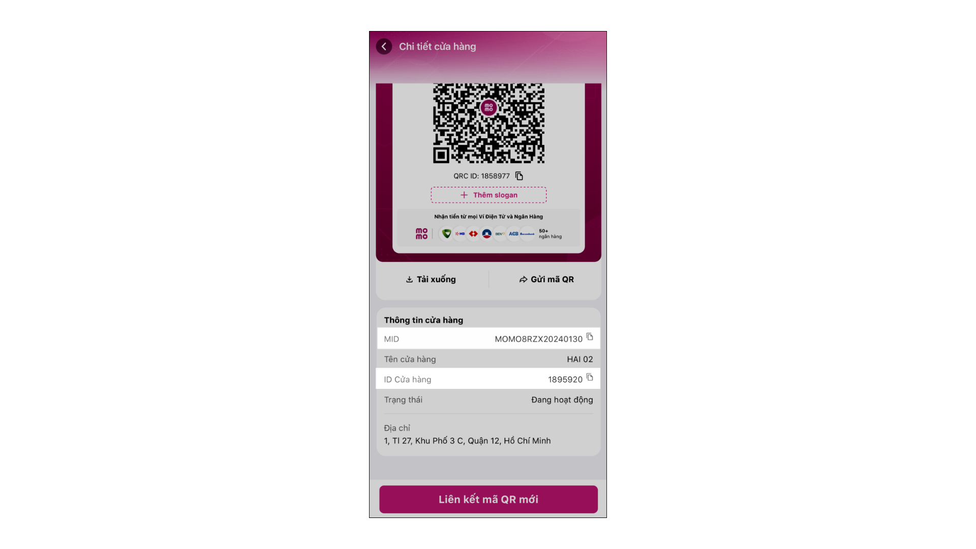 - Mã cửa hàng (Store ID): Bạn lấy thông tin trong Thông tin cửa hàng -> Quản lý cửa hàng