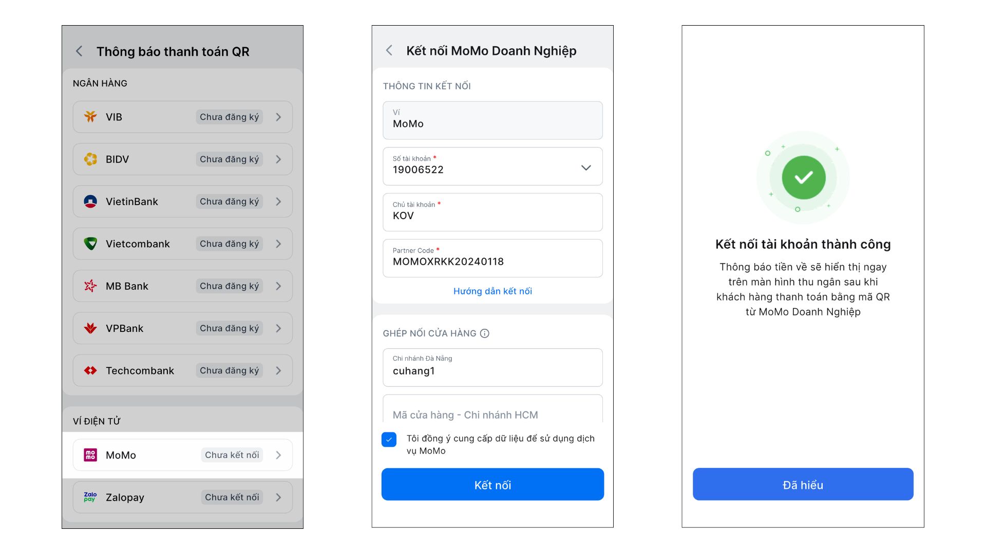 1. Kết nối tài khoản MoMo Doanh nghiệp