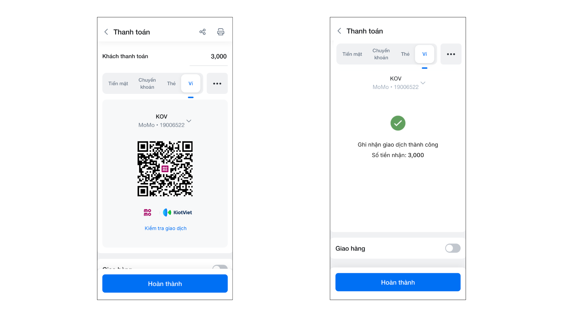 Khi khách hàng thực hiện thanh toán, hệ thống sẽ tự động hiển thị kết quả ngay trên màn hình Bán hàng.