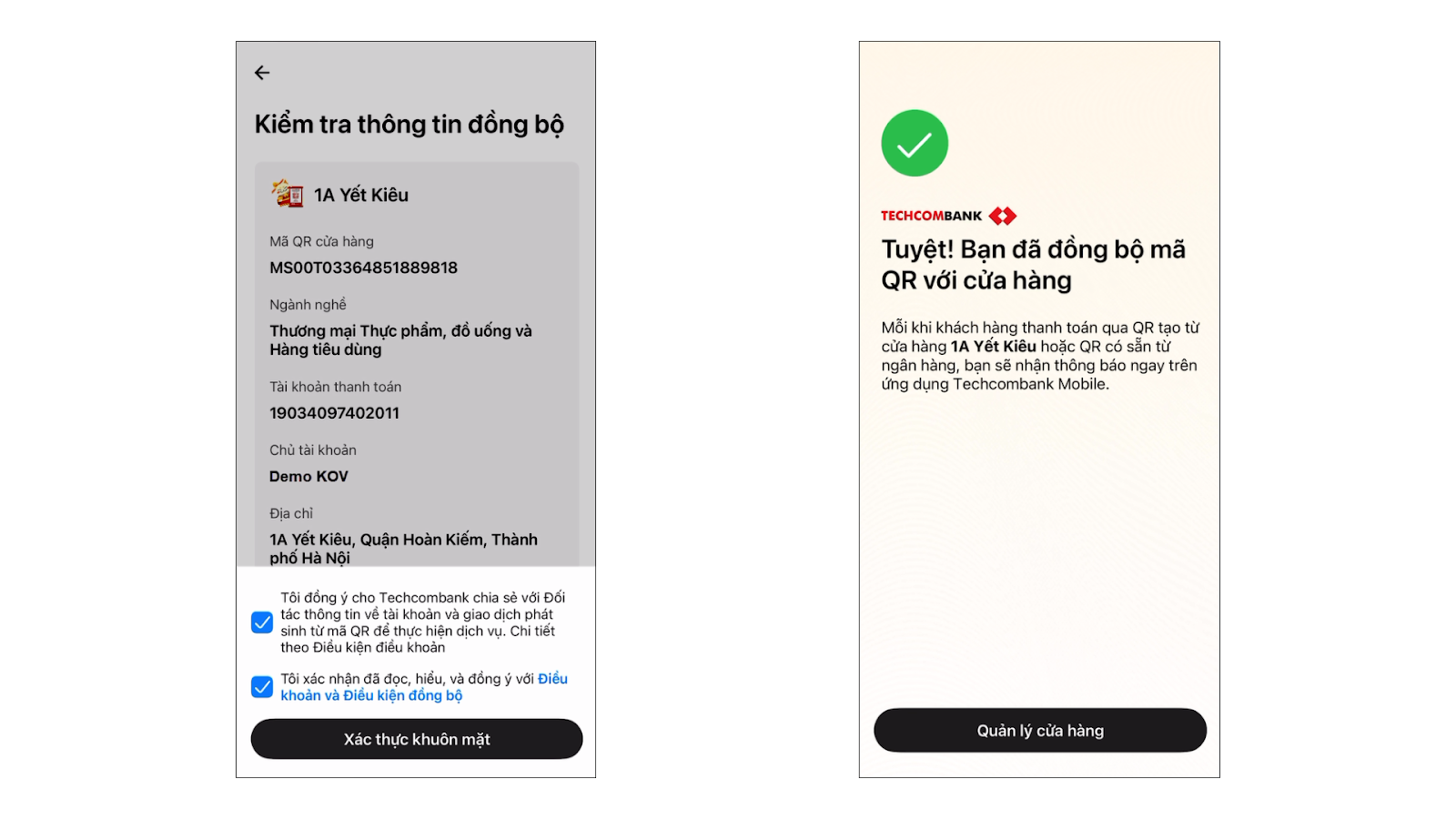 - Giúp chủ cửa hàng và quản lý: Dễ dàng đăng ký và quản lý việc liên kết tài khoản Techcombank cho từng chi nhánh. Một tài khoản ngân hàng có thể sử dụng cho nhiều chi nhánh của cùng một gian hàng.