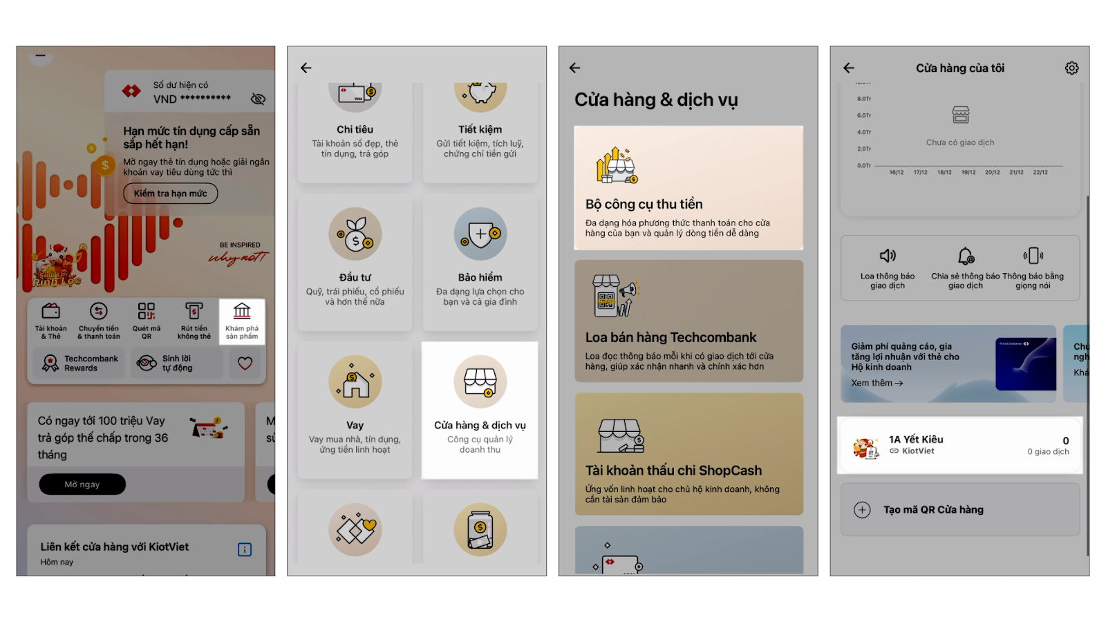 Lưu ý: Tại thời điểm hiện tại, chủ gian hàng vui lòng thực hiện thao tác trên ứng dụng Techcombank Mobile.