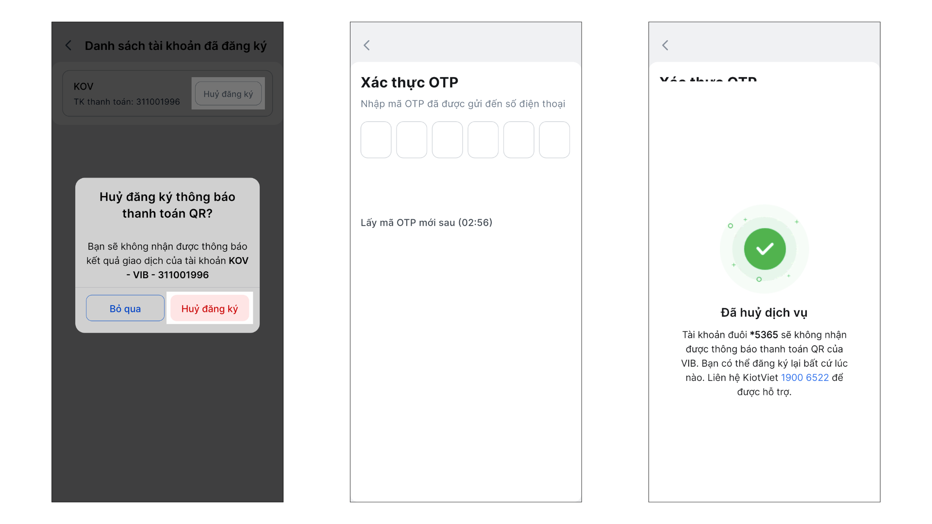 - 2. Hủy dịch vụ nhận thông báo thanh toán VIB