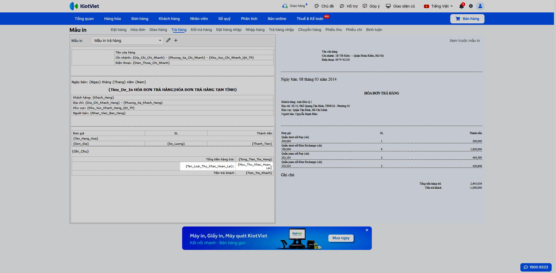 - Mẫu in trả hàng: {Ten_Loai_Thu_Khac_Hoan_Lai} và {Muc_Thu_Khac_Hoan_Lai}.