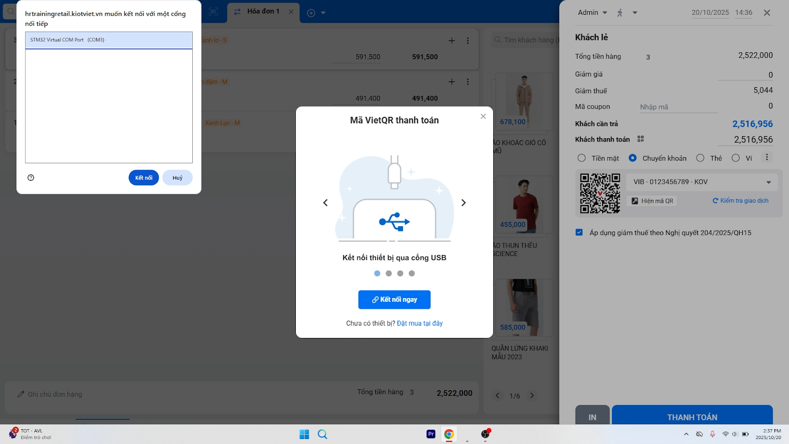 3. Kết nối và hiển thị mã QR khi thanh toán