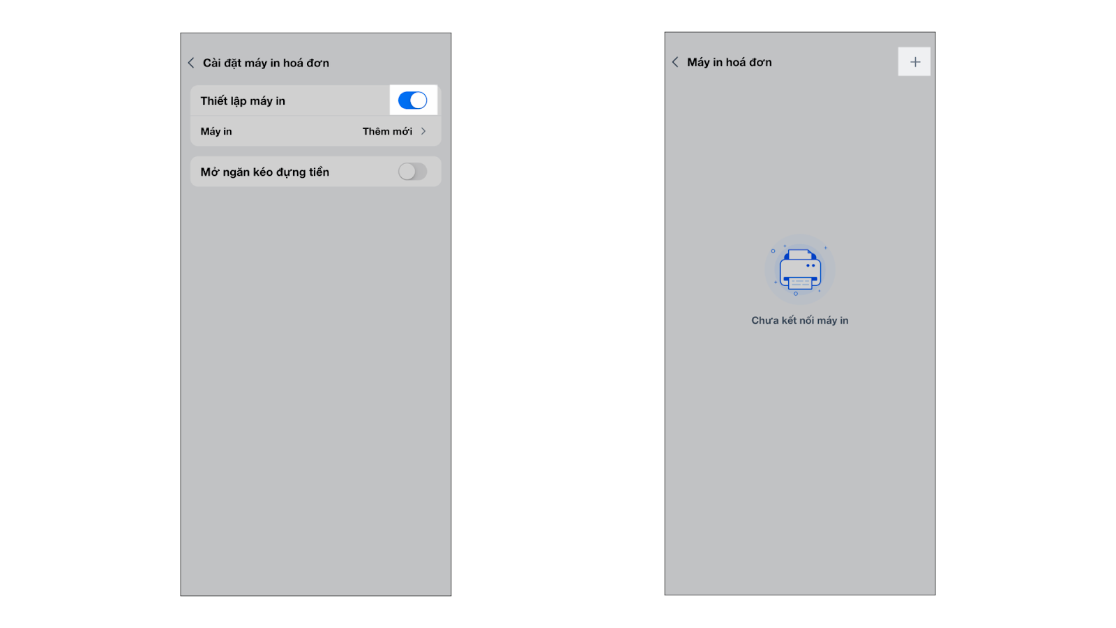- Bật Thiết lập máy in → Nhấn nút Thêm mới → Nhấn +.