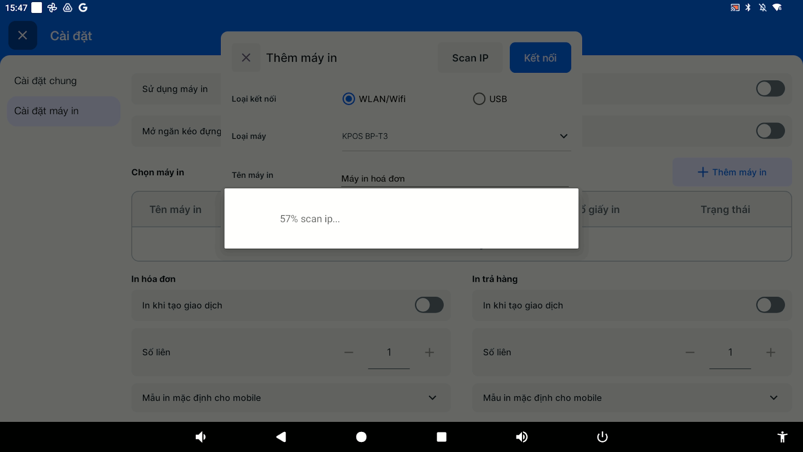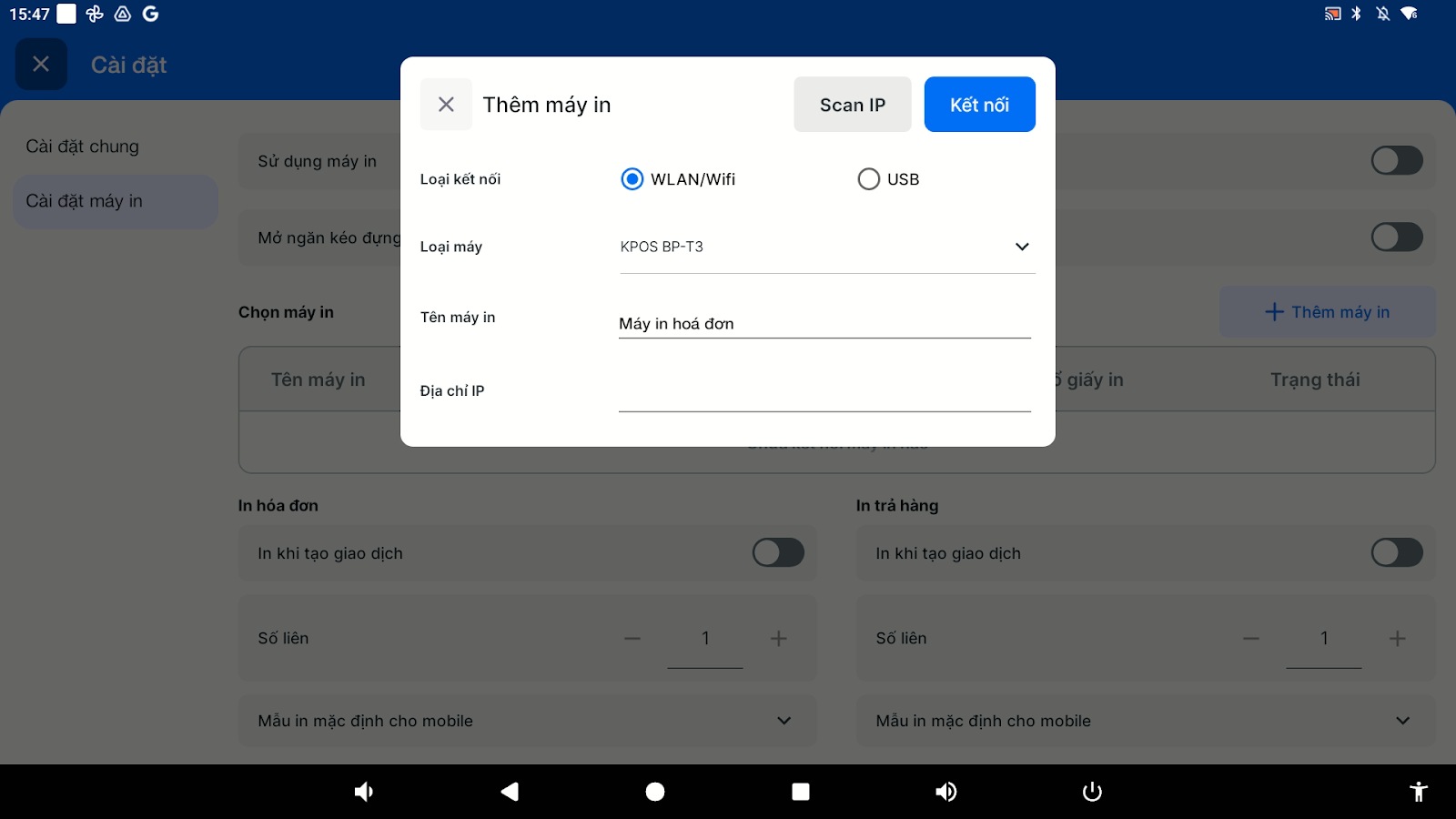 - Tình huống: Bạn muốn in hóa đơn từ ứng dụng KiotViet trên điện thoại ra máy in mạng. Tình huống này yêu cầu bạn đã hoàn thành việc cấu hình IP cố định cho máy in cùng dải mạng với điện thoại.