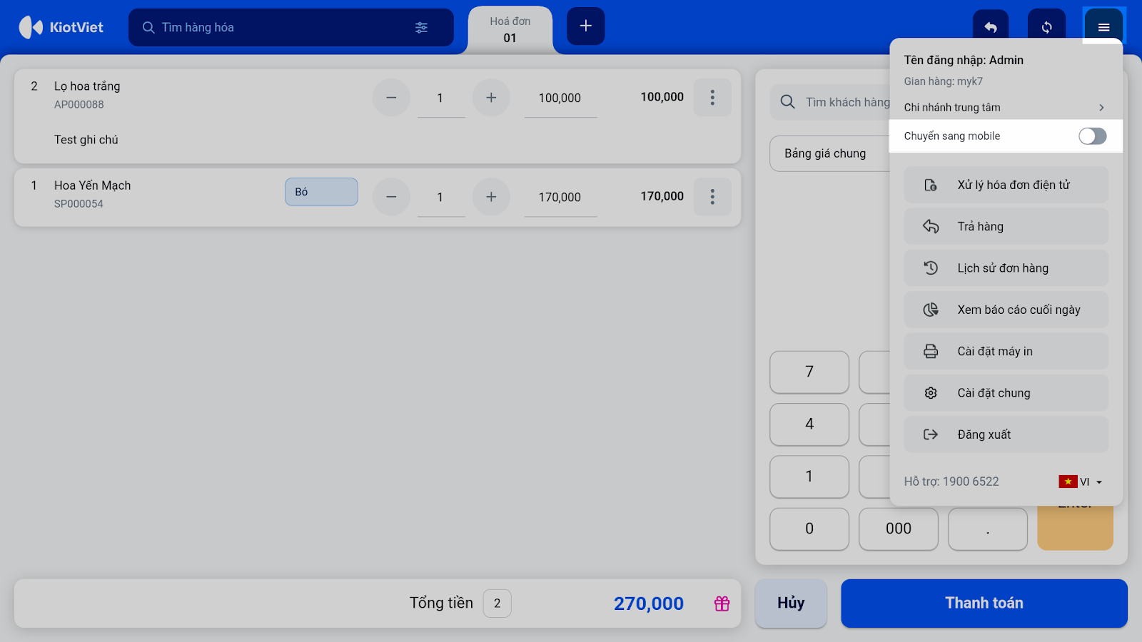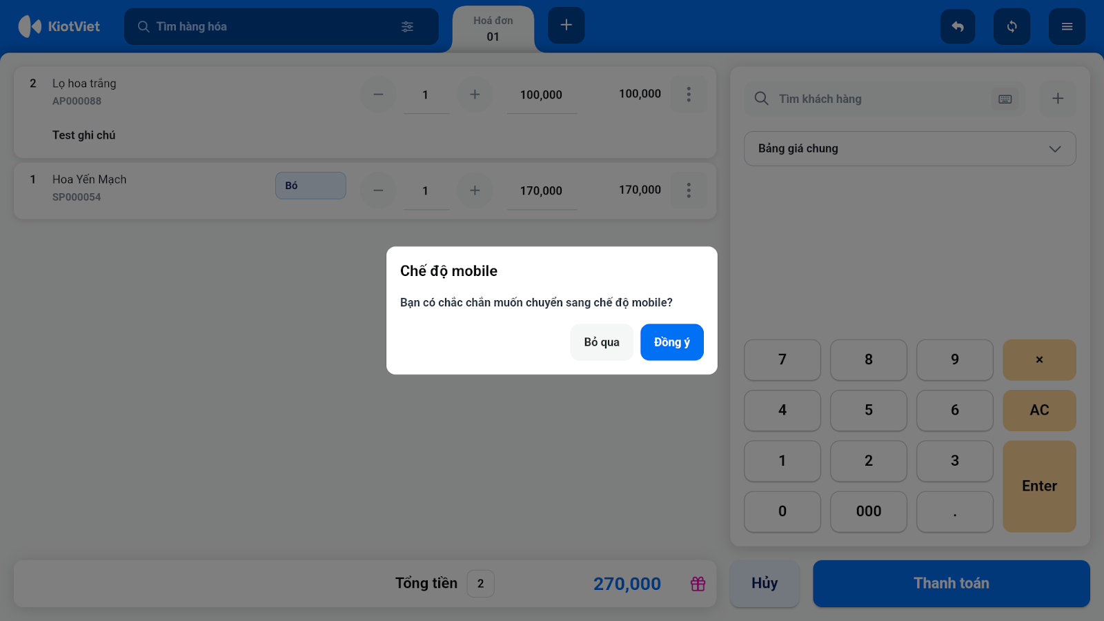 - Giao diện đổi sang chế độ bán hàng chuyên nghiệp cho máy POS.