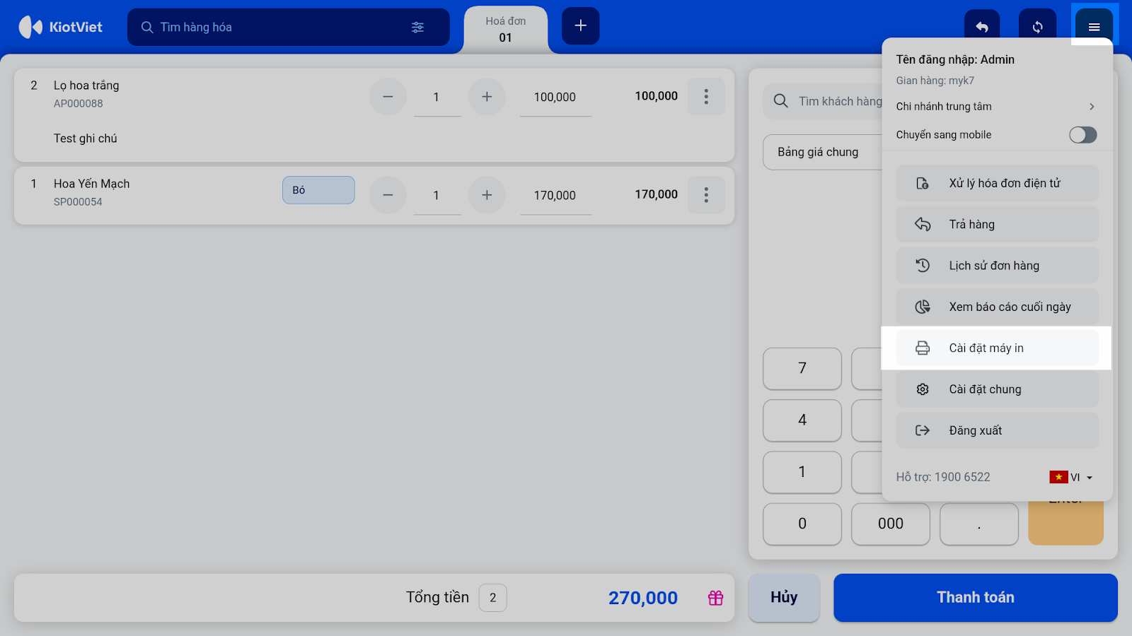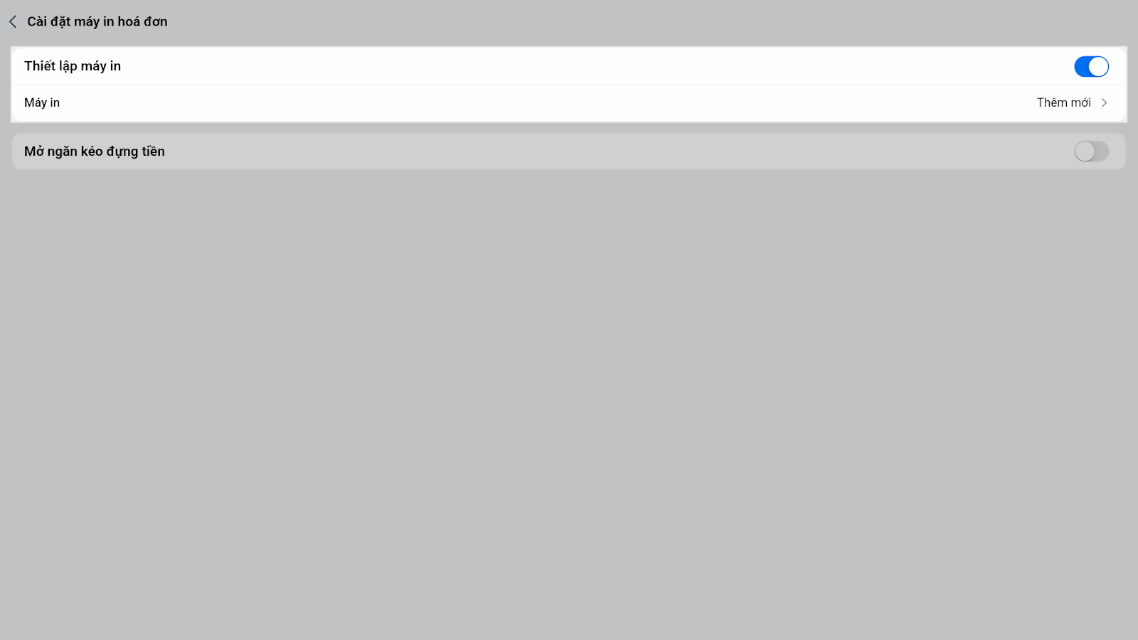 - Tình huống: Để có thể in hóa đơn thanh toán cho khách hàng ngay tại quầy, bạn cần kết nối và thiết lập máy in trên máy POS.