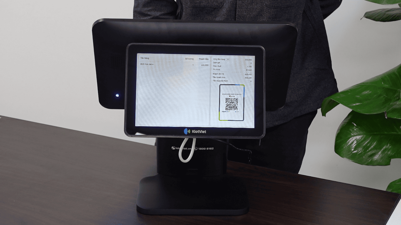 - Tình huống: Bạn muốn sử dụng màn hình hiển thị QR chuyên dụng với máy POS Android của KiotViet.