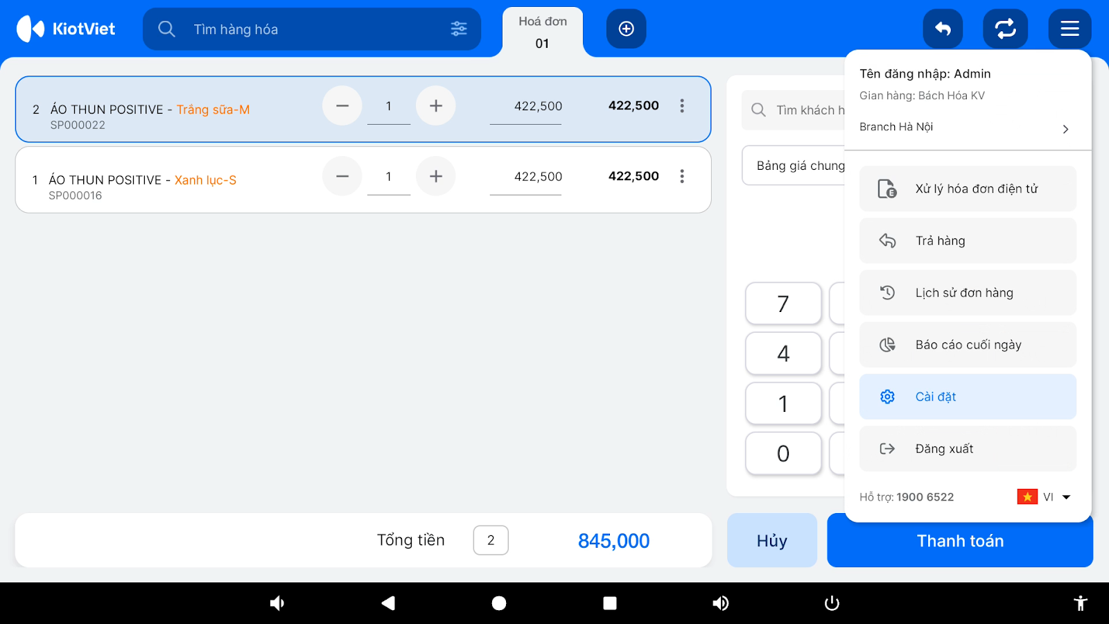 - Thao tác trên ứng dụng KiotViet:
