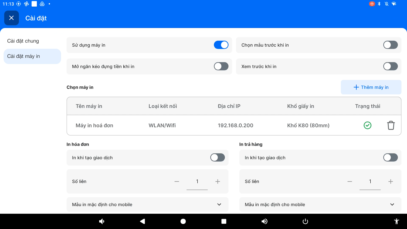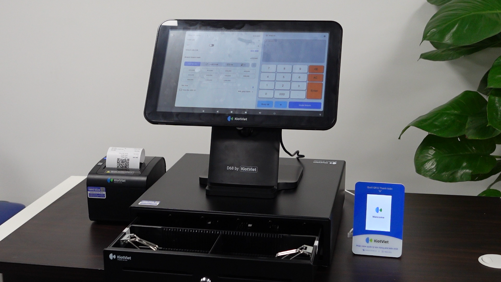 - Tình huống: Bạn muốn ngăn kéo đựng tiền kết nối với máy in tự động mở khi bạn in hóa đơn từ máy POS Android của KiotViet.