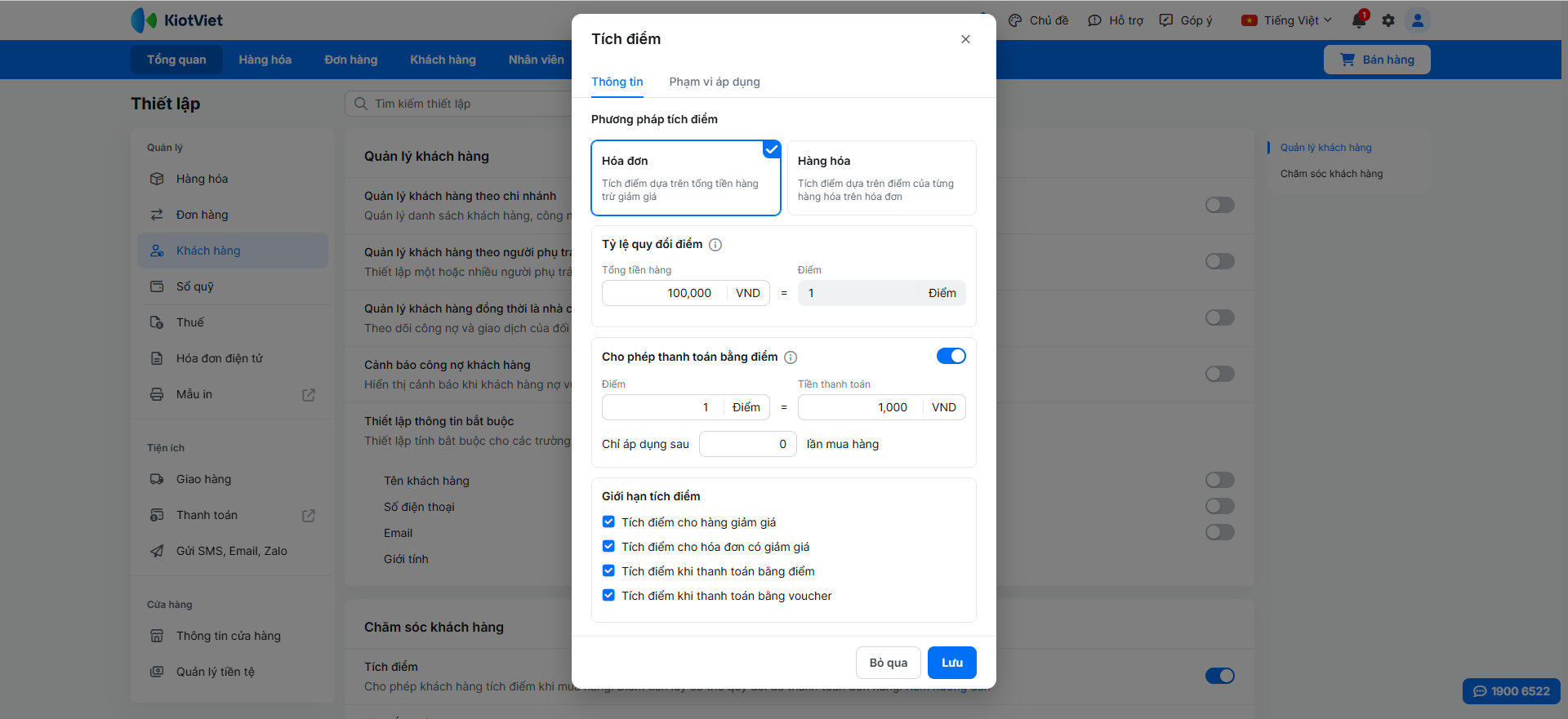 - Nếu tích điểm theo hóa đơn: