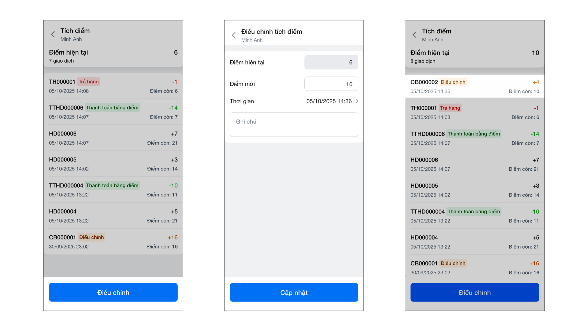 - Tình huống: Một khách hàng thắc mắc về số điểm của họ. Bạn cần kiểm tra lịch sử và điều chỉnh lại điểm cho chính xác.