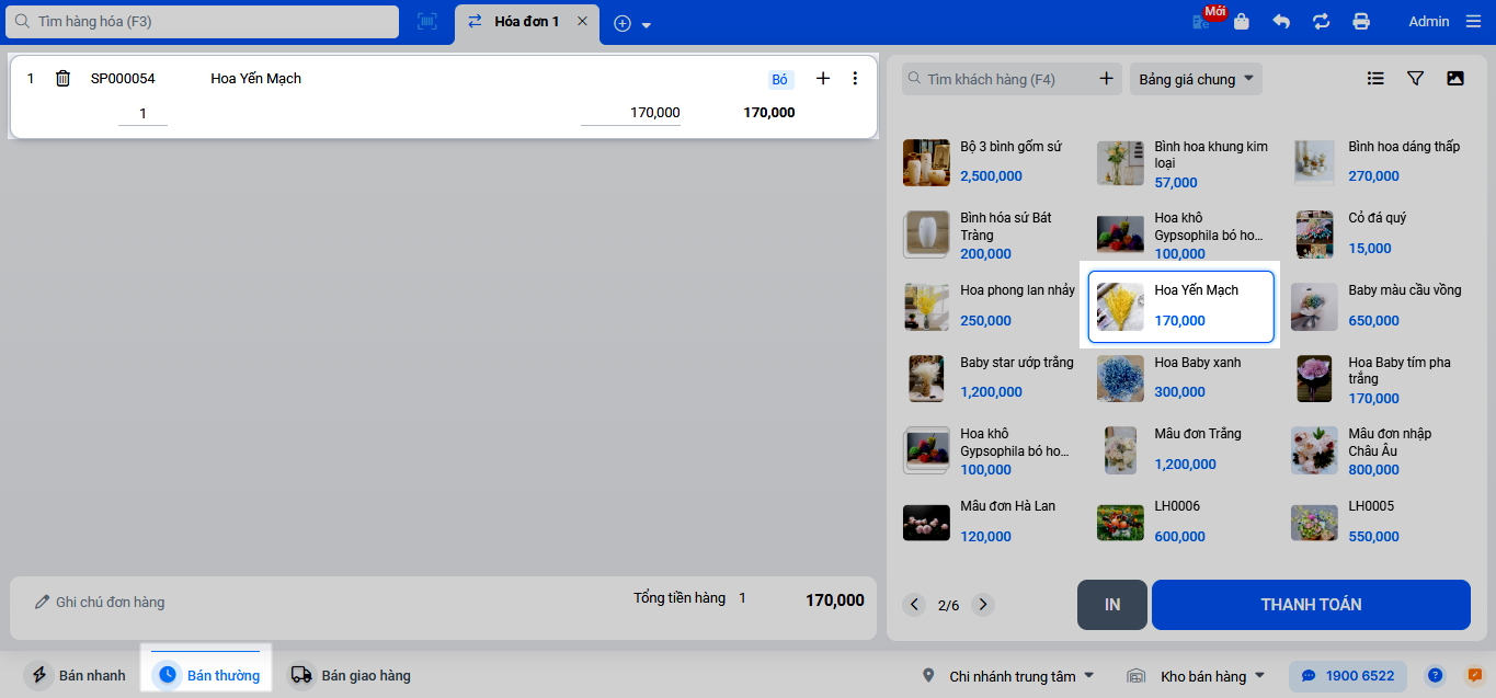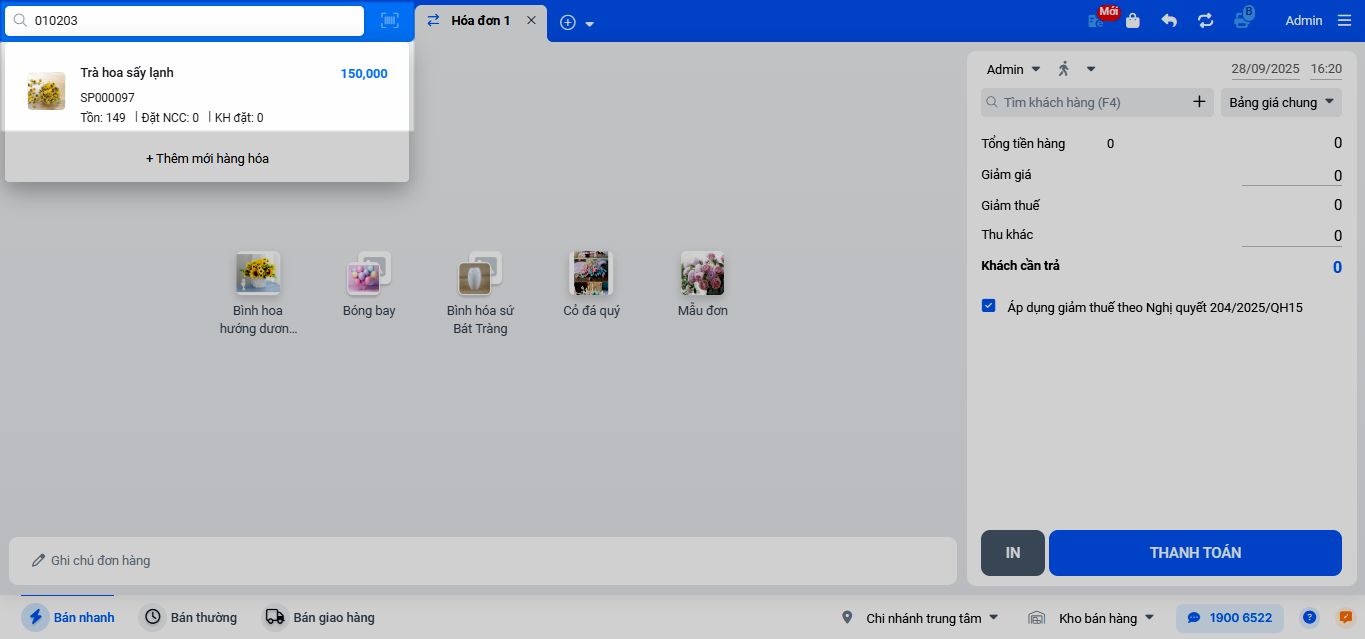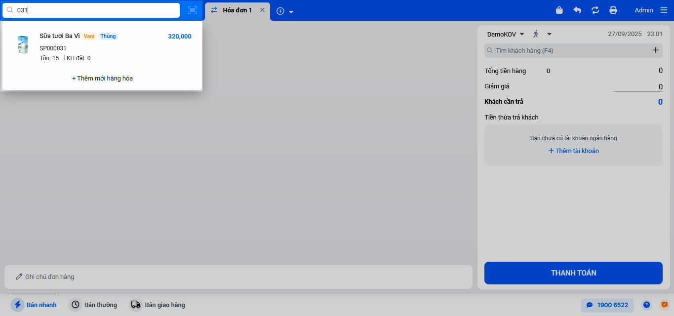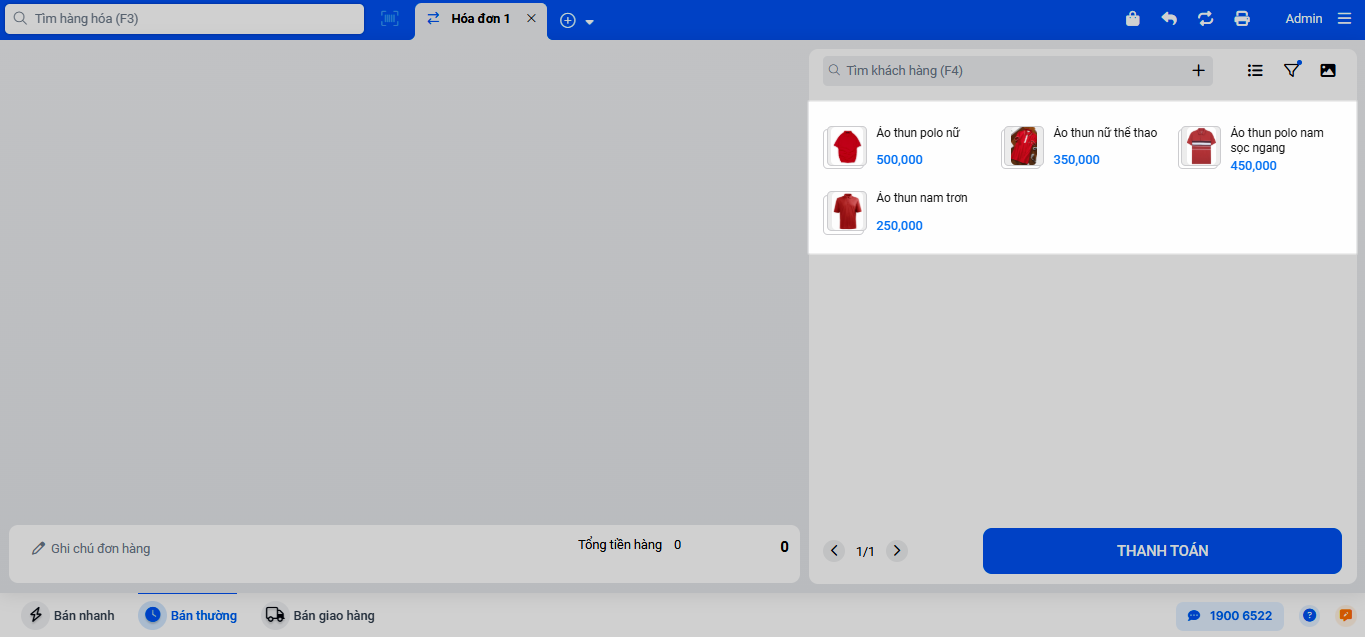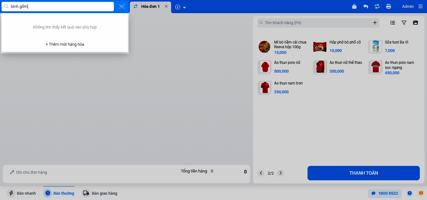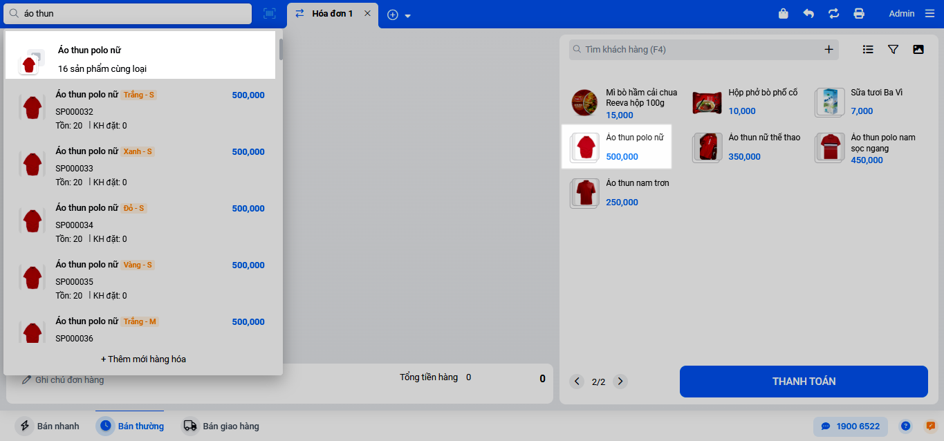 - Tình huống: Bạn cần tìm sản phẩm và thêm vào hóa đơn khi thanh toán tại quầy trên máy POS.